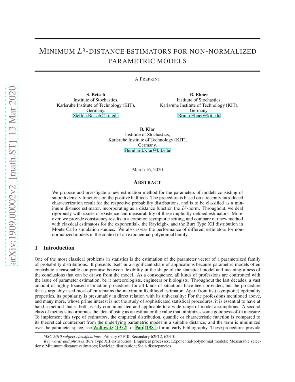 We propose and investigate a new estimation method for the parameters of models consisting of smooth density functions on the positive half axis. The procedure is based on a recently introduced characterization result for the respective probability distributions, and is to be classified as a minimum distance estimator, incorporating as a distance function the -norm. Throughout, we deal rigorously with issues of existence and measurability of these implicitly defined estimators. Moreover, we provide consistency results in a common asymptotic setting, and compare our new method with classical estimators for the exponential-, the Rayleigh-, and the Burr Type XII distribution in Monte Carlo simulation studies. We also assess the performance of different estimators for non-normalized models in the context of an exponential-polynomial family.