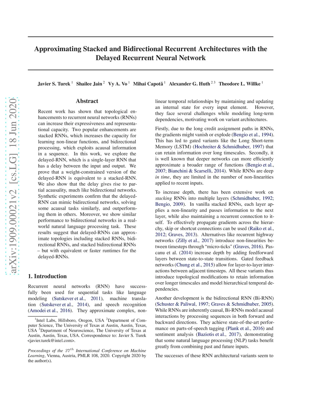 To enhance the expressiveness and representational capacity of recurrent neural networks (RNN), a large body of work has emerged exploring stacked architectures with additional topological modifications like shortcut connections or bidirectionality. However, choosing the best network for a particular problem requires a combinatorial search over architectures and their hyperparameters. In this work, we show that a single-layer RNN can perfectly mimic an arbitrarily deep stacked RNN under specific constraints on its weight matrix and a delay between input and output. This obviates the need to manually select hyperparameters like the number of layers. Additionally, we show that weakening weight constraints while keeping the delay gives rise to partial acausality in the single-layer RNN, much like a bidirectional network. Synthetic experiments confirm that the delayed RNN can mimic bidirectional networks in perfectly solving some acausal tasks, outperforming them in others. Finally, we show that in a challenging language processing task, the delayed RNN performs within 0.3\% of the accuracy of the bidirectional network while reducing computational costs.