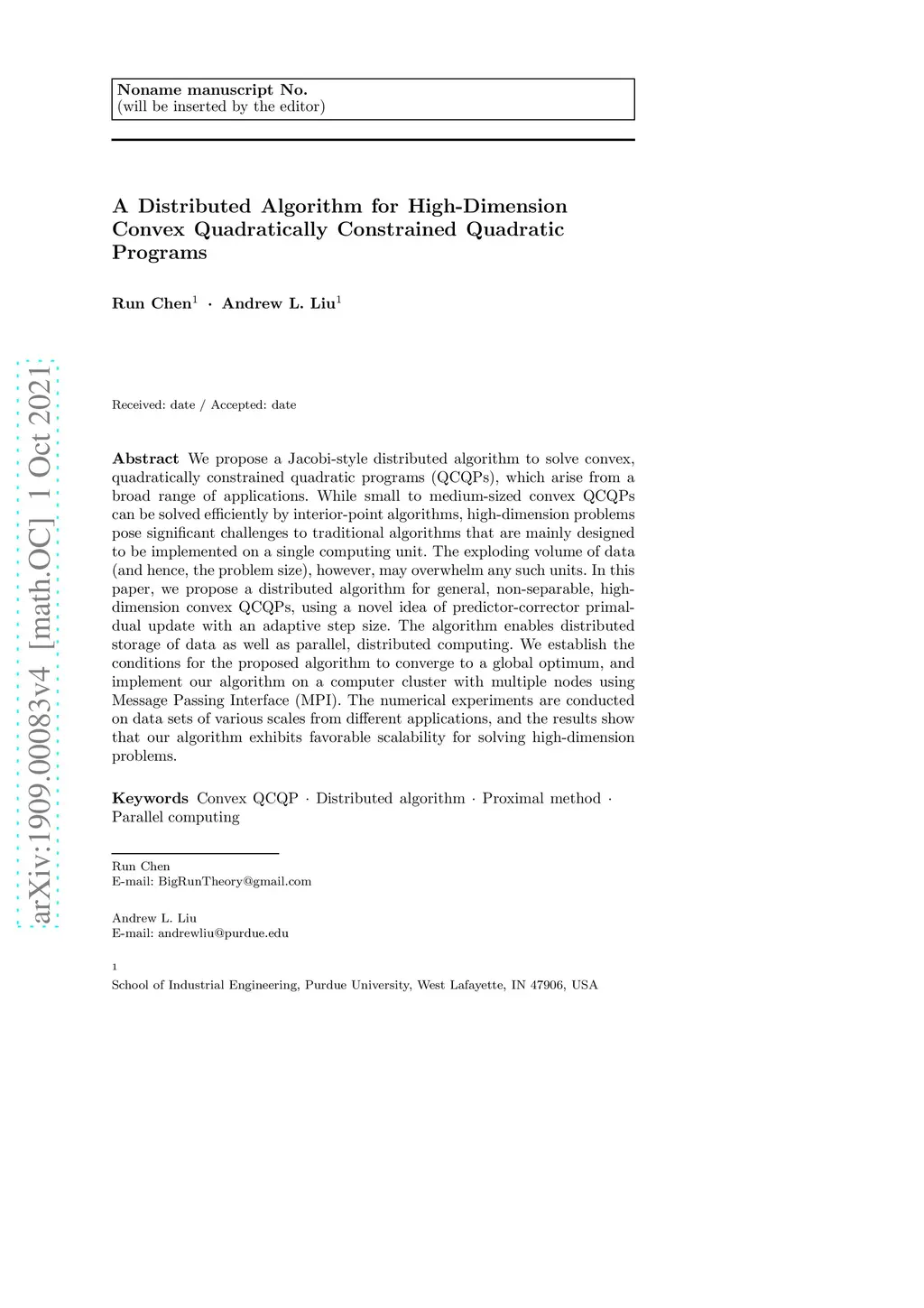 A Distributed Algorithm for Large-scale Convex Quadratically Constrained
