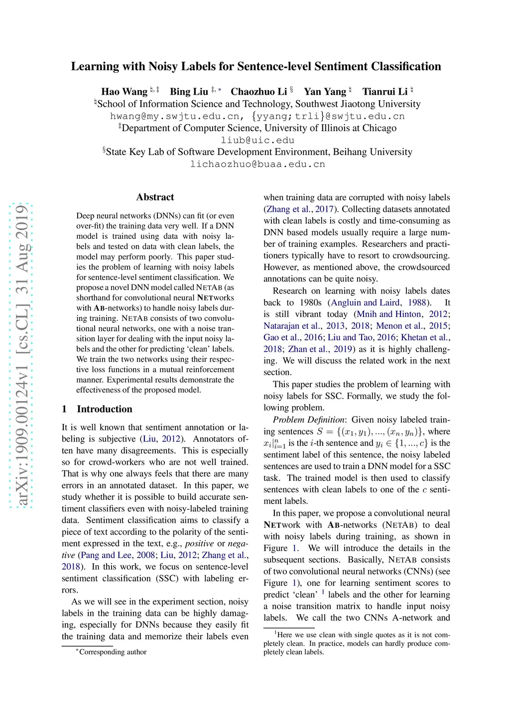Learning with Noisy Labels for Sentence-level Sentiment Classification