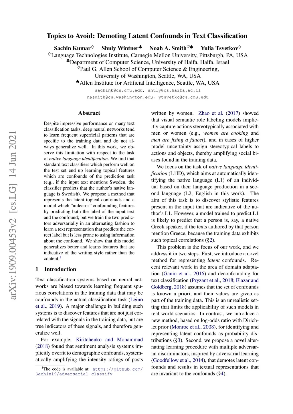 Topics to Avoid: Demoting Latent Confounds in Text Classification