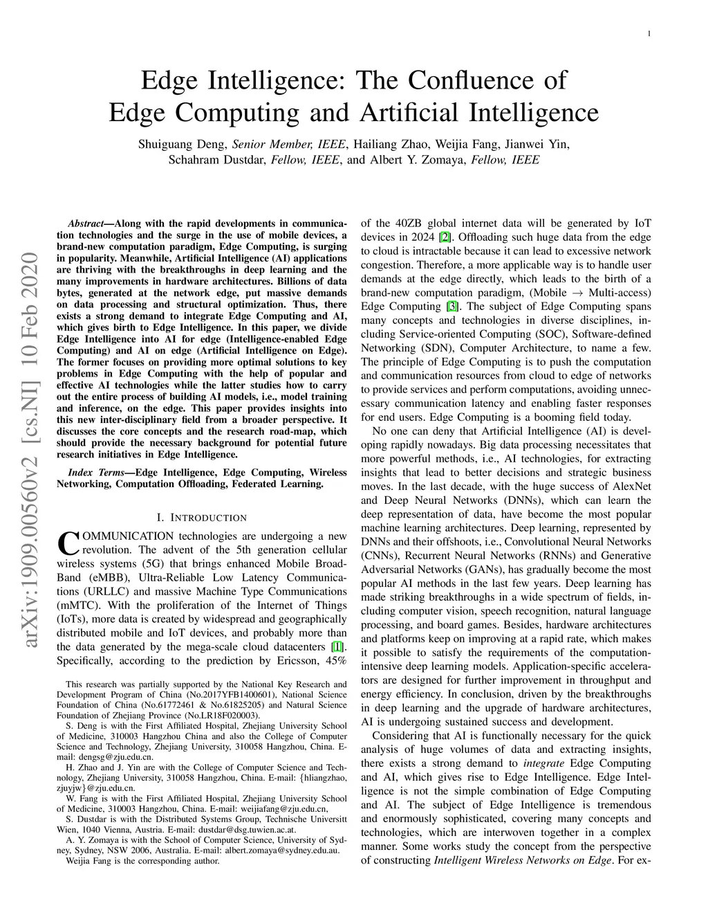 Edge Intelligence: The Confluence of Edge Computing and Artificial