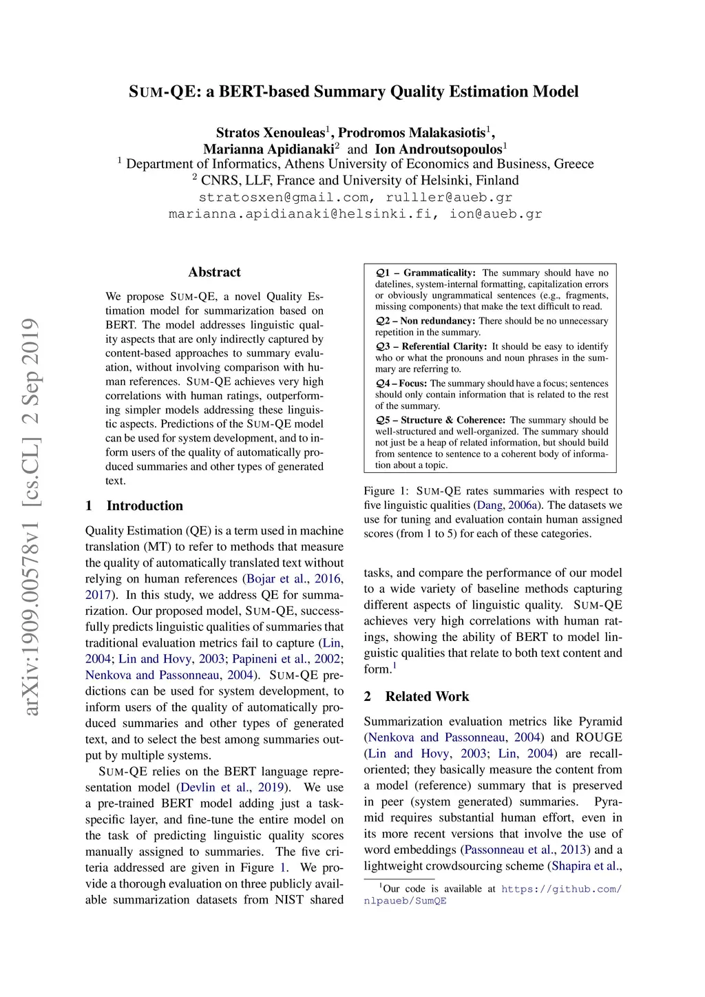 SumQE: a BERT-based Summary Quality Estimation Model