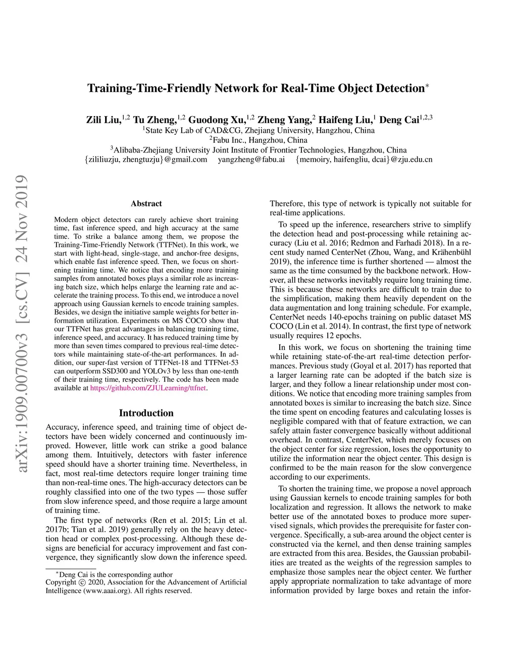 Modern object detectors can rarely achieve short training time, fast inference speed, and high accuracy at the same time. To strike a balance between them, we propose the Training-Time-Friendly Network (TTFNet). In this work, we start with light-head, single-stage, and anchor-free designs, enabling fast inference speed. Then, we focus on shortening training time. We notice that producing more high-quality samples plays a similar role as increasing batch size, which helps enlarge the learning rate and accelerate the training process. To this end, we introduce a novel method using Gaussian kernels to produce training samples. Moreover, we design the initiative sample weights for better information utilization. Experiments on MS COCO show that our TTFNet has great advantages in balancing training time, inference speed, and accuracy. It has reduced training time by more than seven times compared to previous real-time detectors while maintaining state-of-the-art performances. In addition, our super-fast version of TTFNet-18 and TTFNet-53 can outperform SSD300 and YOLOv3 by less than one-tenth of their training time, respectively. Code has been made available at \url{https://github.com/ZJULearning/ttfnet}.
