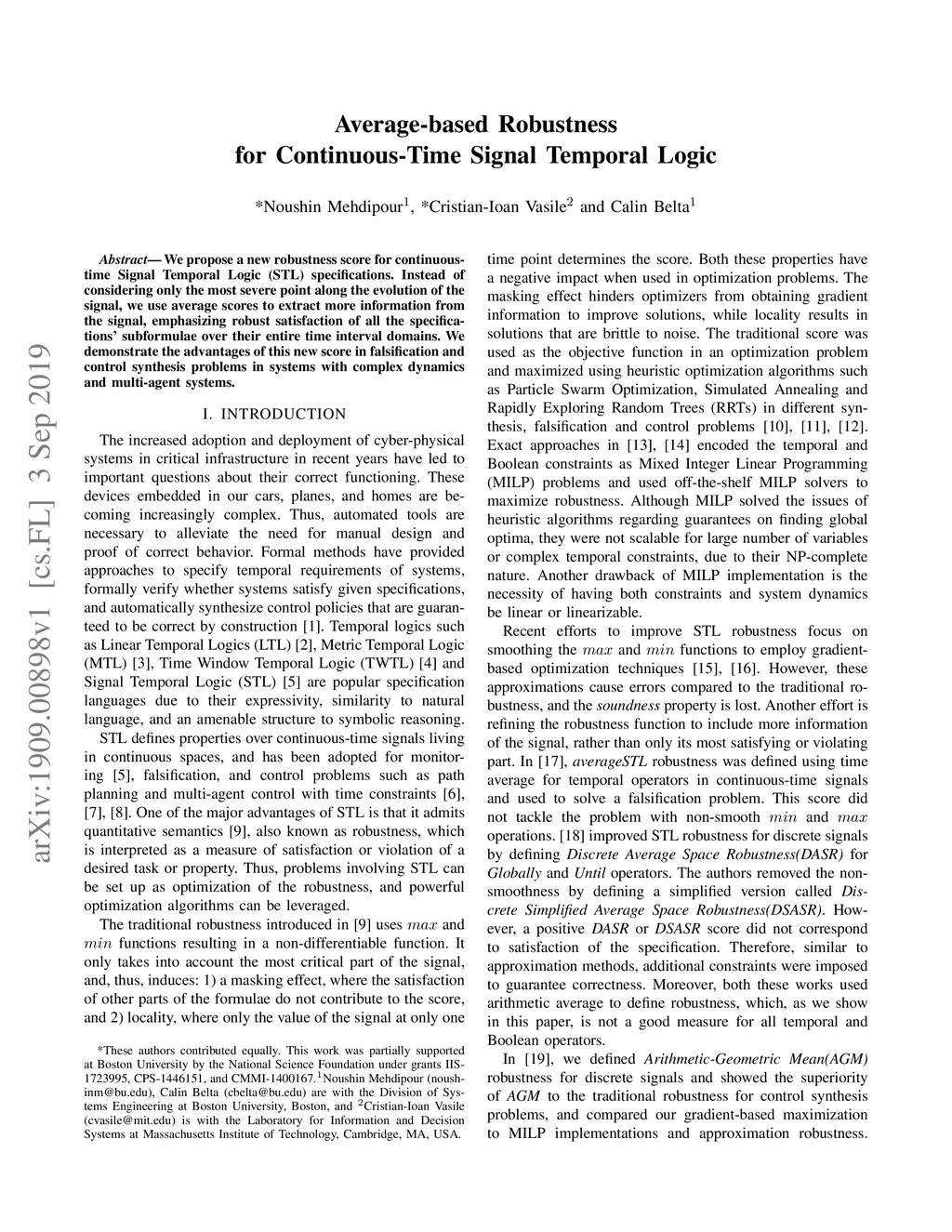 We propose a new robustness score for continuous-time Signal Temporal Logic (STL) specifications. Instead of considering only the most severe point along the evolution of the signal, we use average scores to extract more information from the signal, emphasizing robust satisfaction of all the specifications' subformulae over their entire time interval domains. We demonstrate the advantages of this new score in falsification and control synthesis problems in systems with complex dynamics and multi-agent systems.