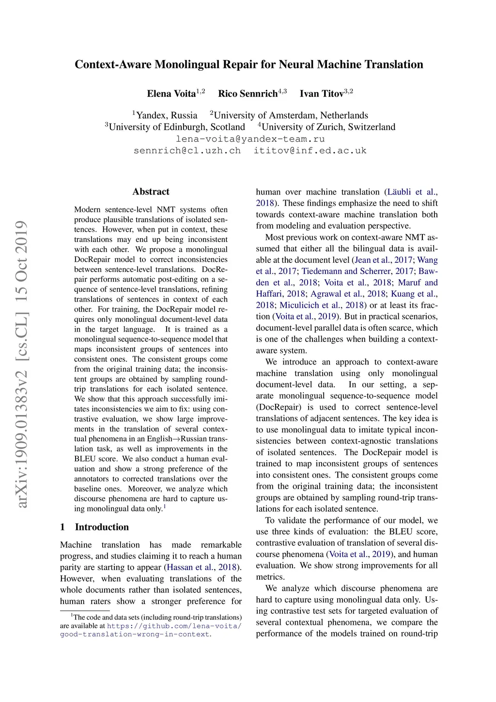 Context-Aware Monolingual Repair for Neural Machine Translation