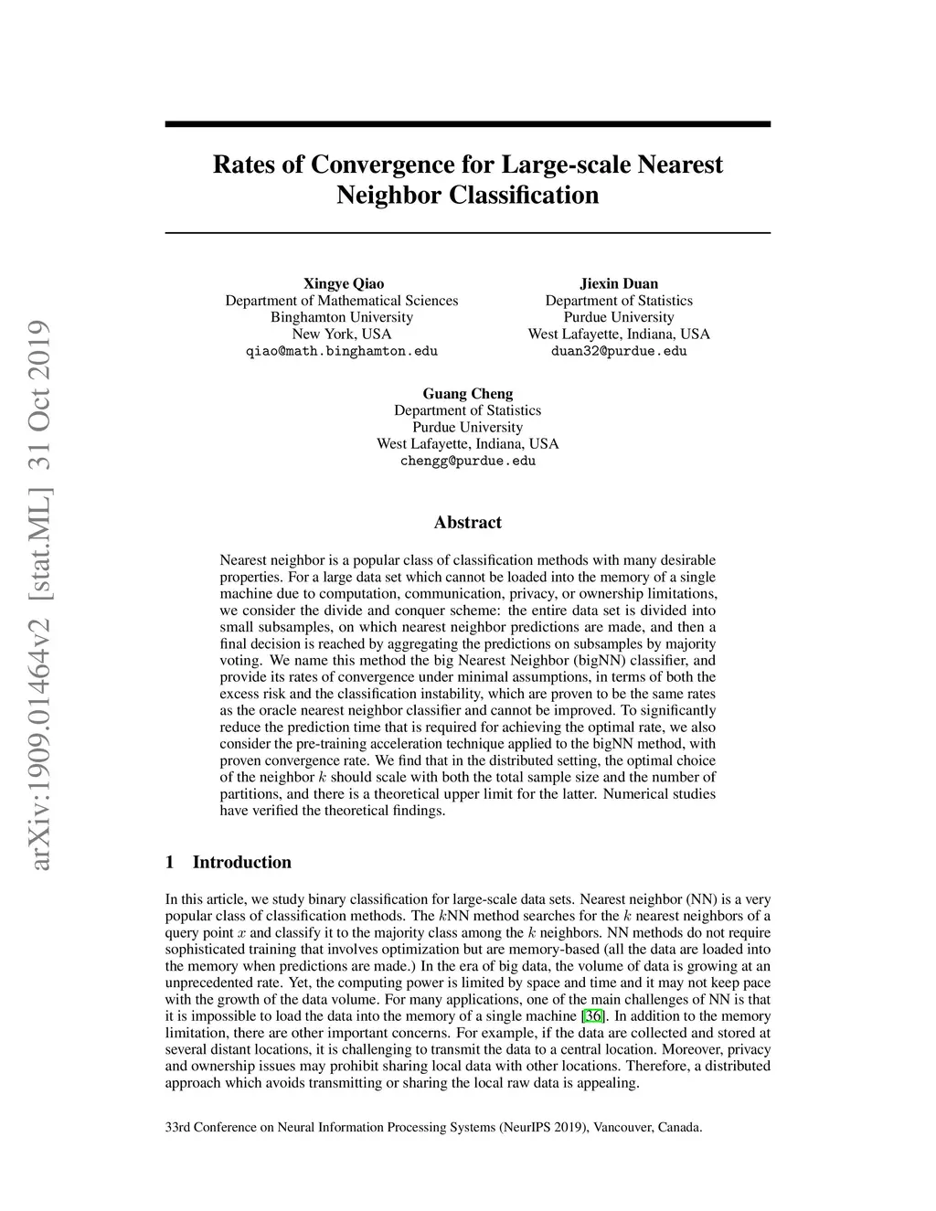 Rates of Convergence for Large-scale Nearest Neighbor Classification