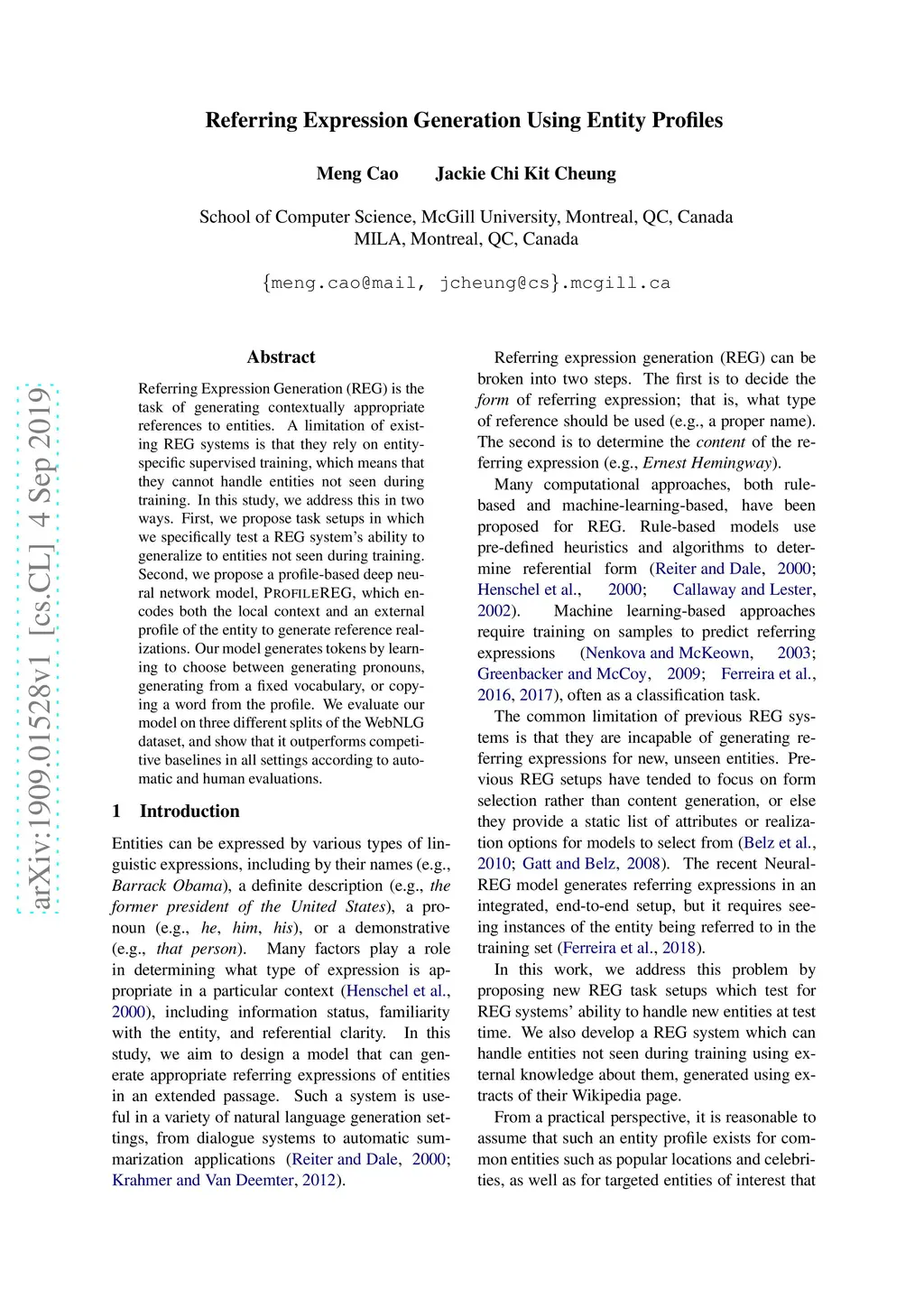 Referring Expression Generation (REG) is the task of generating contextually appropriate references to entities. A limitation of existing REG systems is that they rely on entity-specific supervised training, which means that they cannot handle entities not seen during training. In this study, we address this in two ways. First, we propose task setups in which we specifically test a REG system's ability to generalize to entities not seen during training. Second, we propose a profile-based deep neural network model, ProfileREG, which encodes both the local context and an external profile of the entity to generate reference realizations. Our model generates tokens by learning to choose between generating pronouns, generating from a fixed vocabulary, or copying a word from the profile. We evaluate our model on three different splits of the WebNLG dataset, and show that it outperforms competitive baselines in all settings according to automatic and human evaluations.