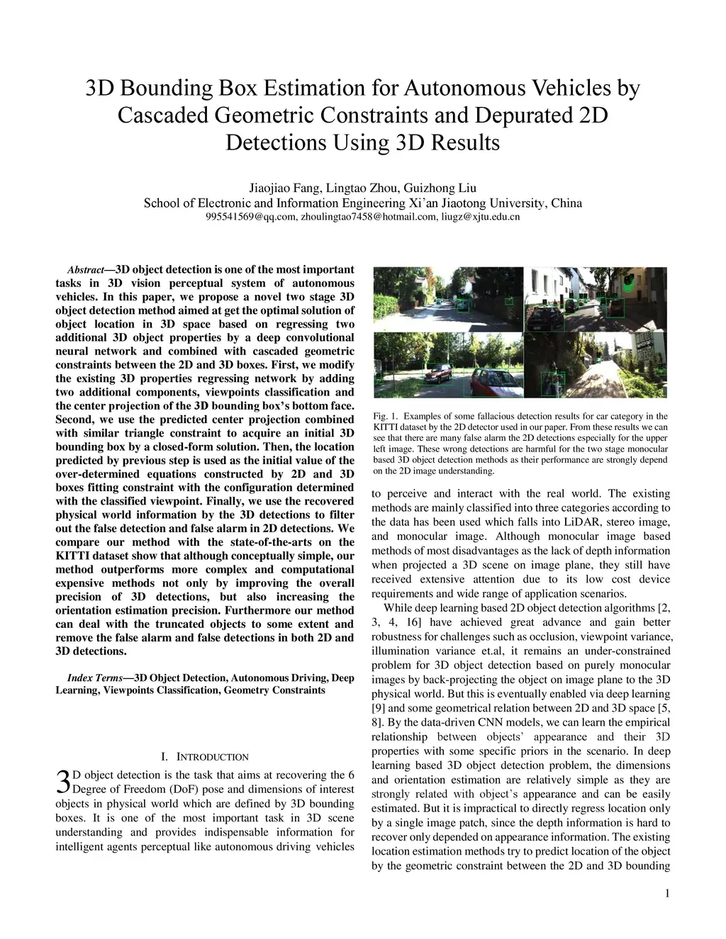 3D Bounding Box Estimation for Autonomous Vehicles by Cascaded Geometric
