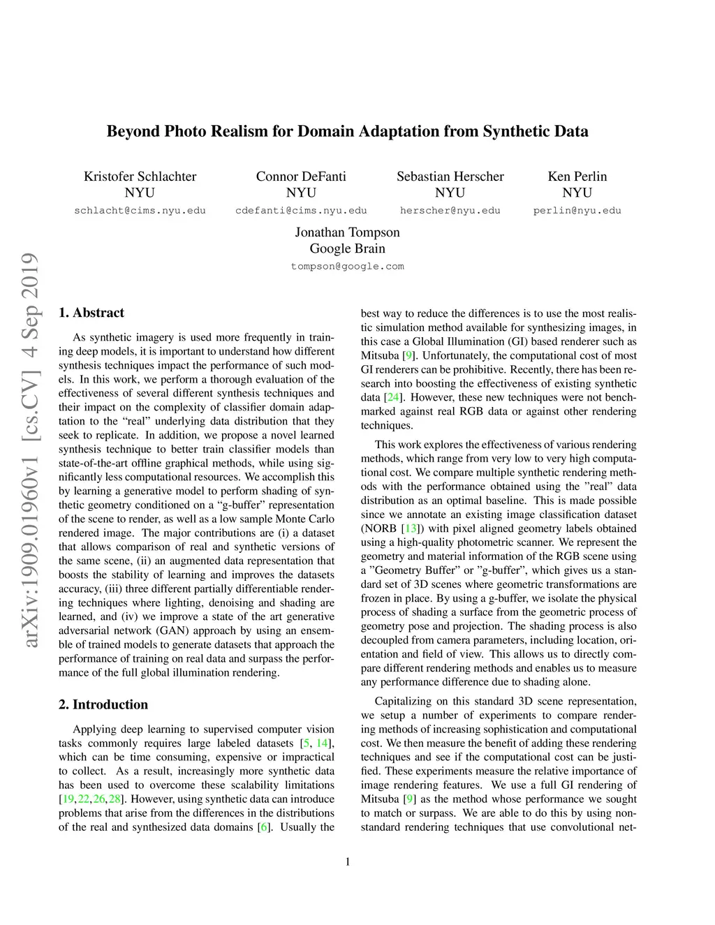 As synthetic imagery is used more frequently in training deep models, it is important to understand how different synthesis techniques impact the performance of such models. In this work, we perform a thorough evaluation of the effectiveness of several different synthesis techniques and their impact on the complexity of classifier domain adaptation to the "real" underlying data distribution that they seek to replicate. In addition, we propose a novel learned synthesis technique to better train classifier models than state-of-the-art offline graphical methods, while using significantly less computational resources. We accomplish this by learning a generative model to perform shading of synthetic geometry conditioned on a "g-buffer" representation of the scene to render, as well as a low sample Monte Carlo rendered image. The major contributions are (i) a dataset that allows comparison of real and synthetic versions of the same scene, (ii) an augmented data representation that boosts the stability of learning and improves the datasets accuracy, (iii) three different partially differentiable rendering techniques where lighting, denoising and shading are learned, and (iv) we improve a state of the art generative adversarial network (GAN) approach by using an ensemble of trained models to generate datasets that approach the performance of training on real data and surpass the performance of the full global illumination rendering.