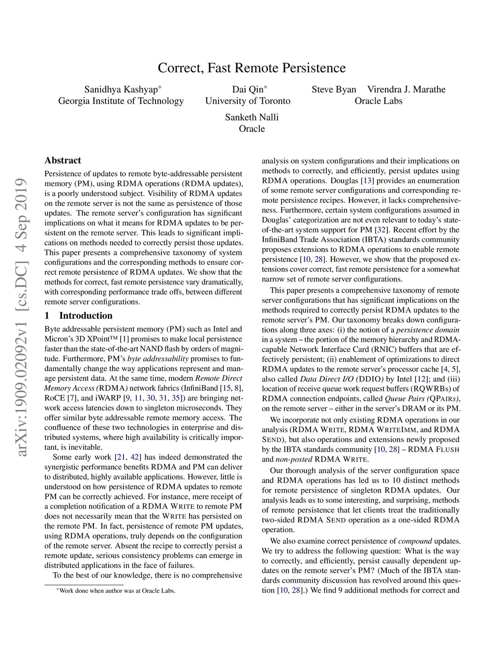Persistence of updates to remote byte-addressable persistent memory (PM), using RDMA operations (RDMA updates), is a poorly understood subject. Visibility of RDMA updates on the remote server is not the same as persistence of those updates. The remote server's configuration has significant implications on what it means for RDMA updates to be persistent on the remote server. This leads to significant implications on methods needed to correctly persist those updates. This paper presents a comprehensive taxonomy of system configurations and the corresponding methods to ensure correct remote persistence of RDMA updates. We show that the methods for correct, fast remote persistence vary dramatically, with corresponding performance trade offs, between different remote server configurations.