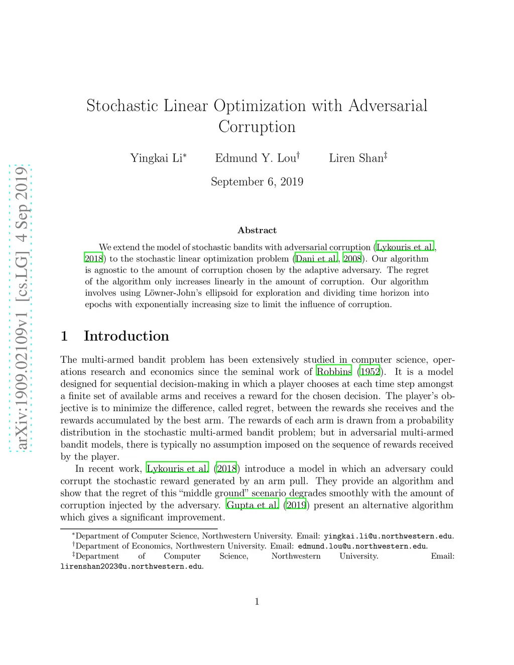 Stochastic Linear Optimization with Adversarial Corruption