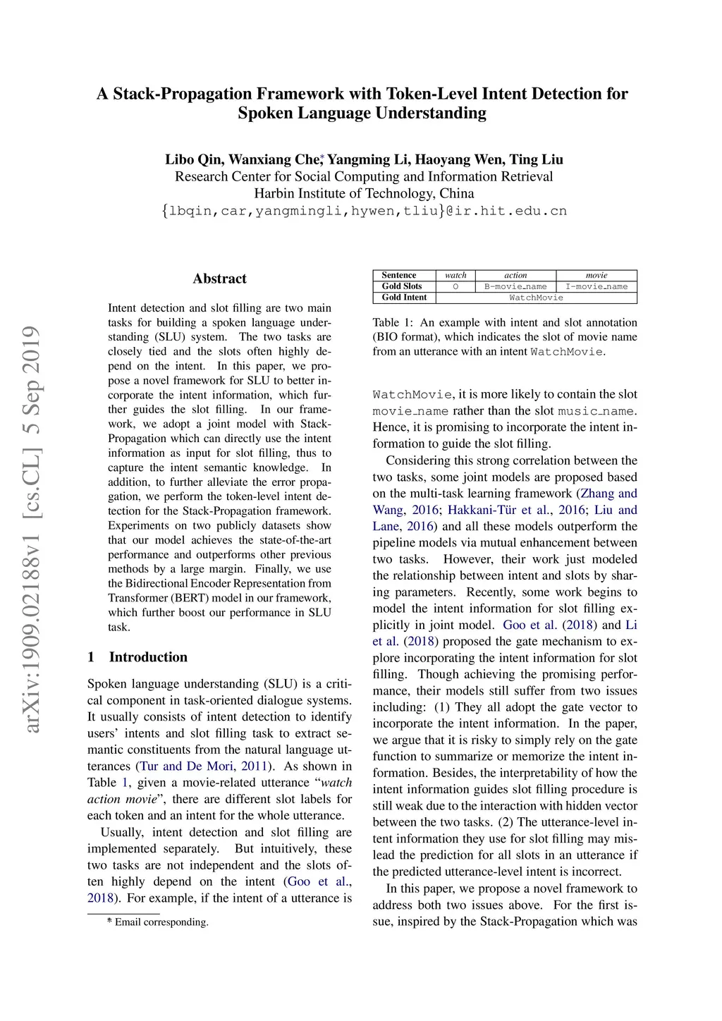 A Stack-Propagation Framework with Token-Level Intent Detection for