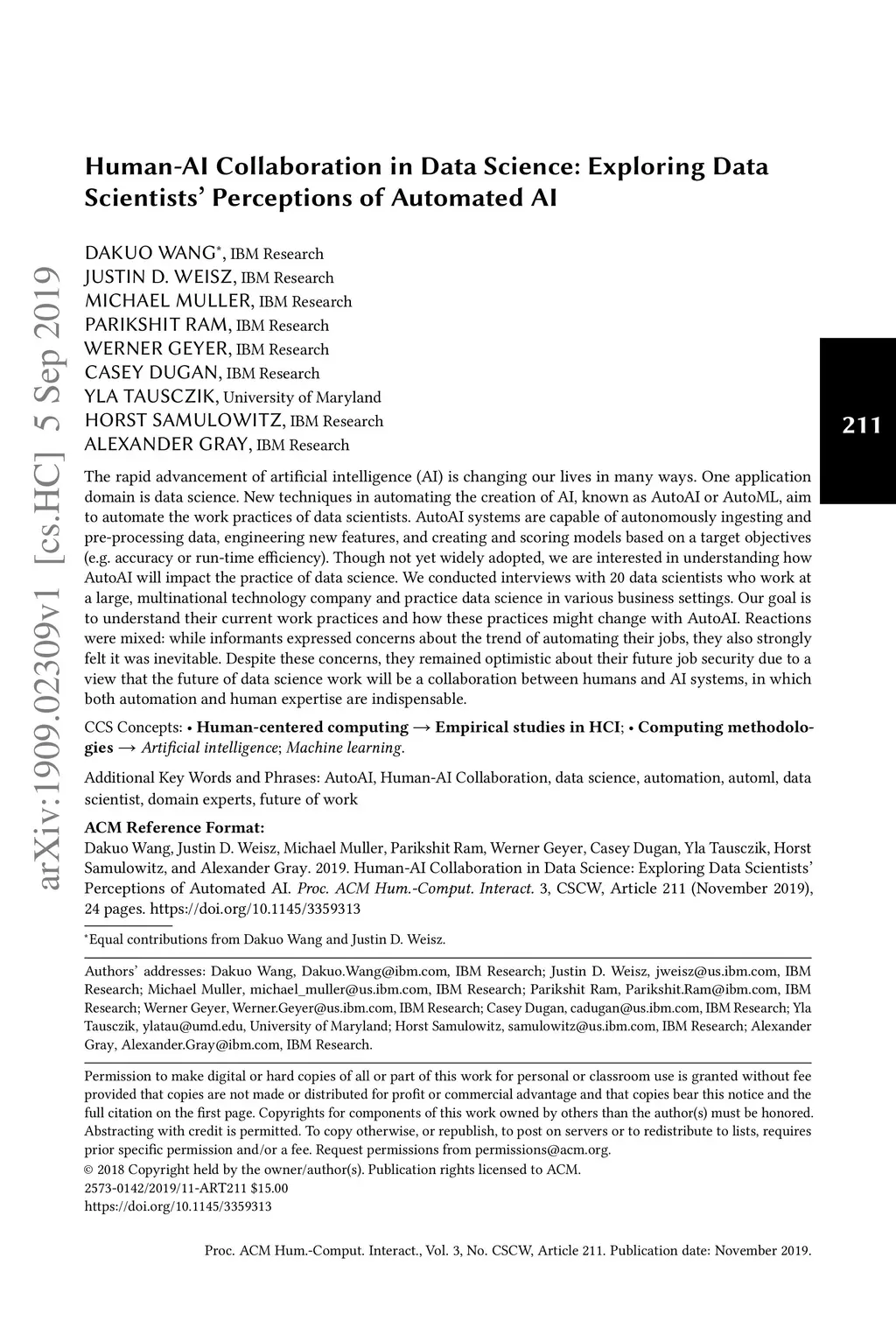 Human-AI Collaboration in Data Science: Exploring Data Scientists'