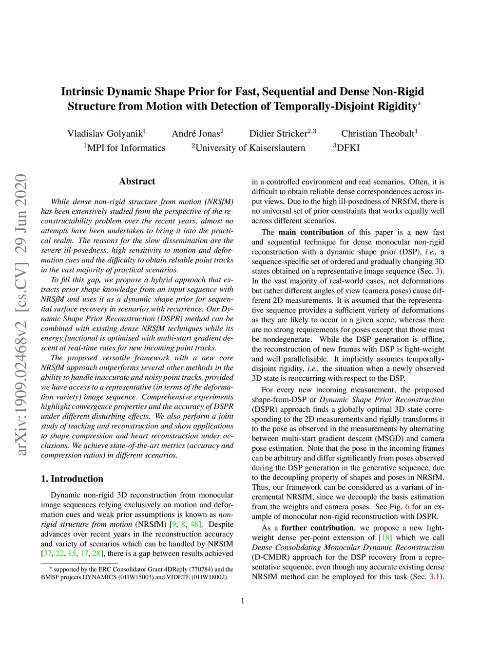 Intrinsic Dynamic Shape Prior for Fast, Sequential and Dense Non-Rigid