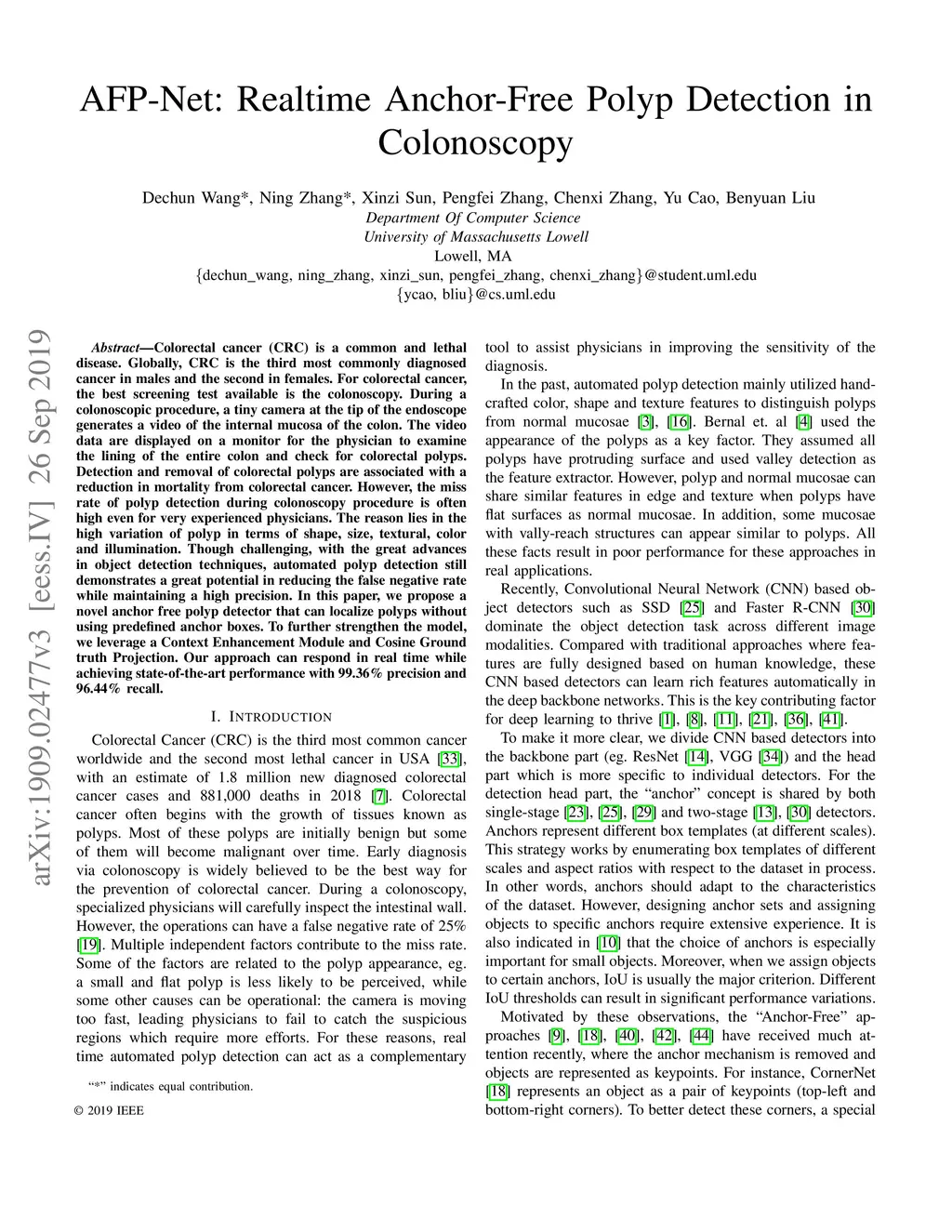 AFP-Net: Realtime Anchor-Free Polyp Detection in Colonoscopy
