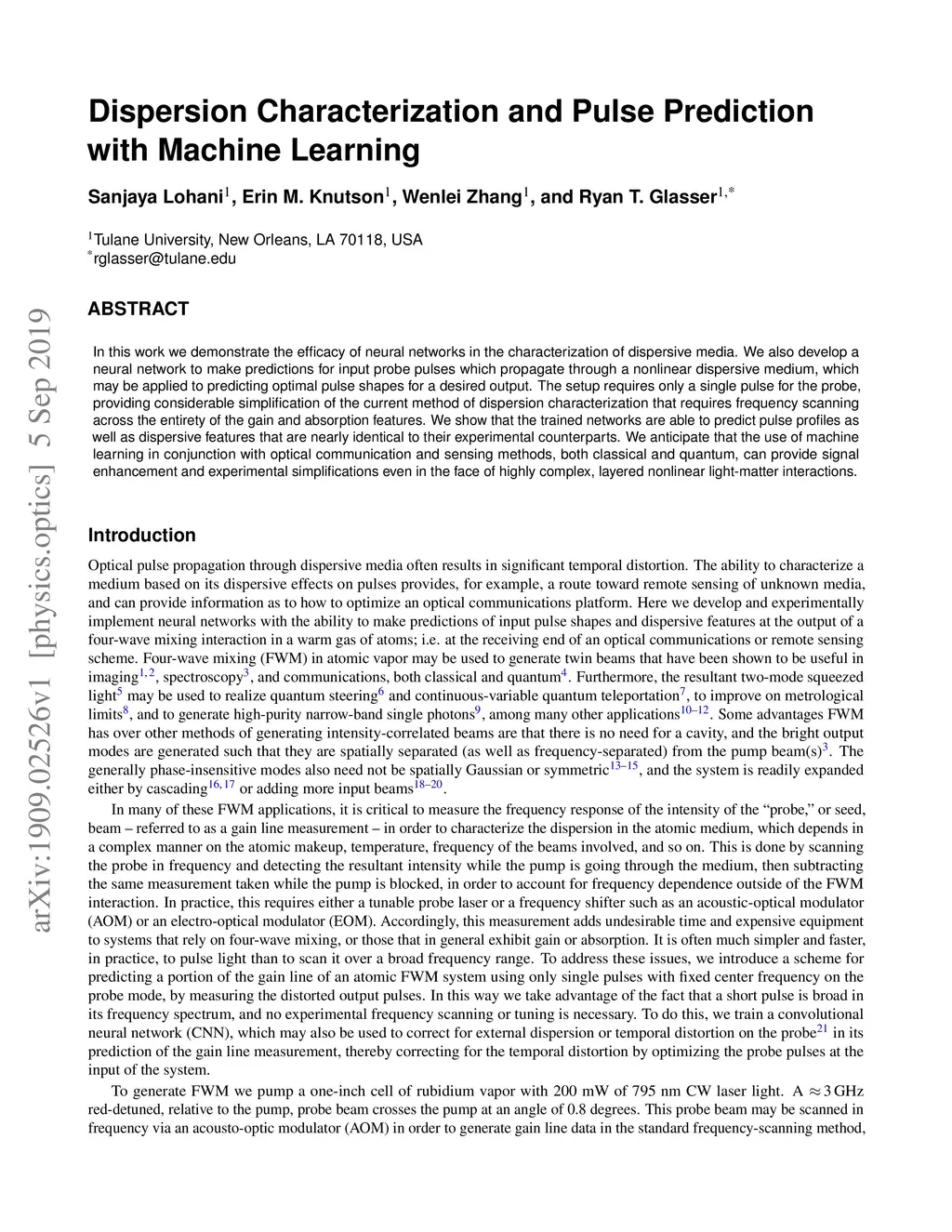 In this work we demonstrate the efficacy of neural networks in the characterization of dispersive media. We also develop a neural network to make predictions for input probe pulses which propagate through a nonlinear dispersive medium, which may be applied to predicting optimal pulse shapes for a desired output. The setup requires only a single pulse for the probe, providing considerable simplification of the current method of dispersion characterization that requires frequency scanning across the entirety of the gain and absorption features. We show that the trained networks are able to predict pulse profiles as well as dispersive features that are nearly identical to their experimental counterparts. We anticipate that the use of machine learning in conjunction with optical communication and sensing methods, both classical and quantum, can provide signal enhancement and experimental simplifications even in the face of highly complex, layered nonlinear light-matter interactions.