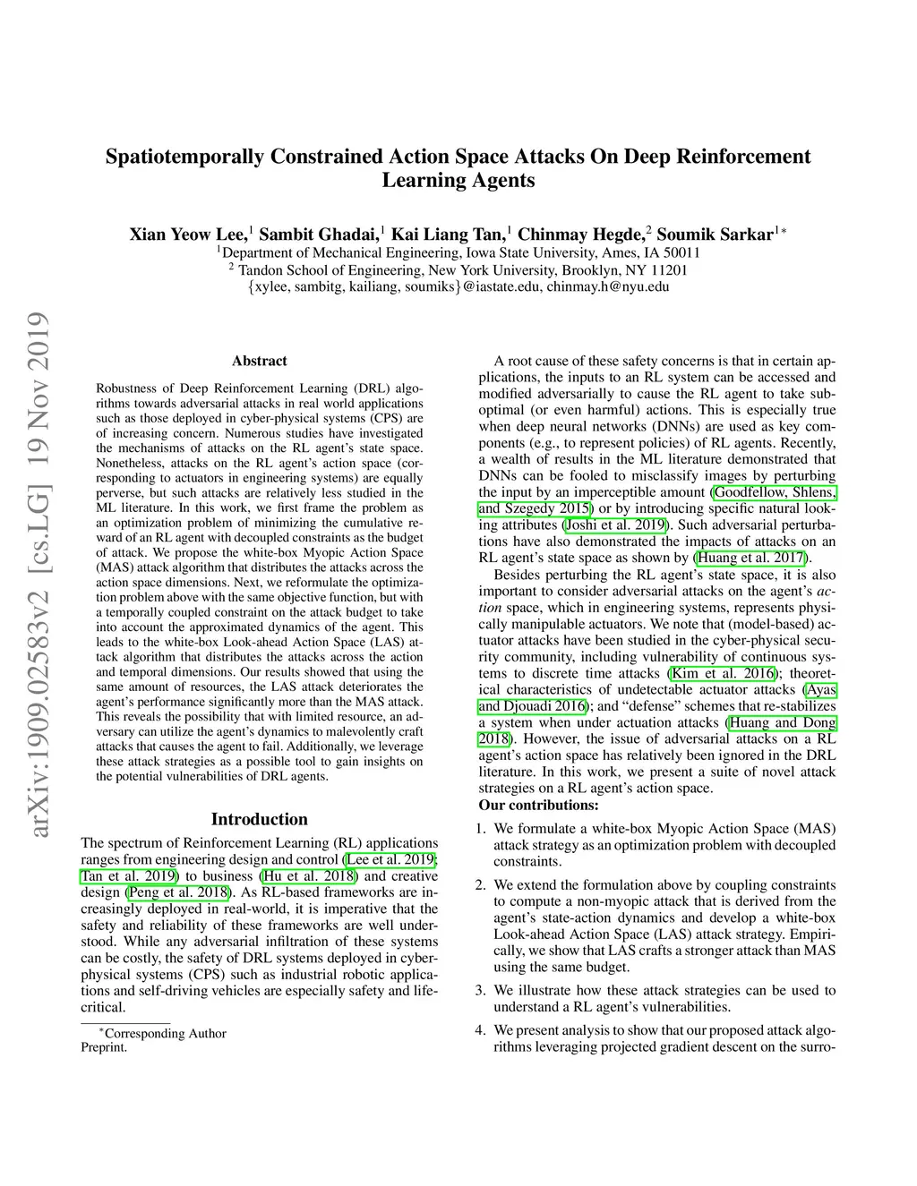 Spatiotemporally Constrained Action Space Attacks on Deep Reinforcement