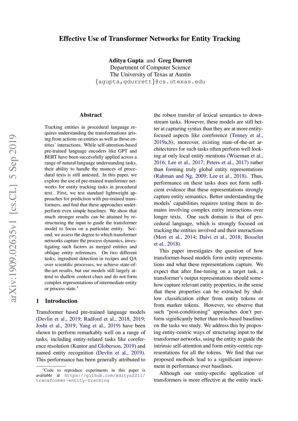 Effective Use of Transformer Networks for Entity Tracking