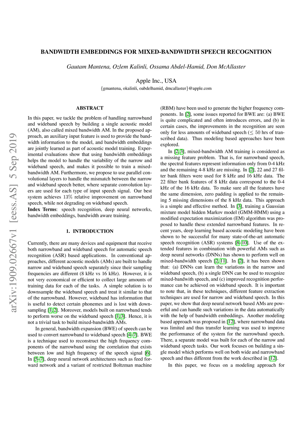 Bandwidth Embeddings for Mixed-bandwidth Speech Recognition