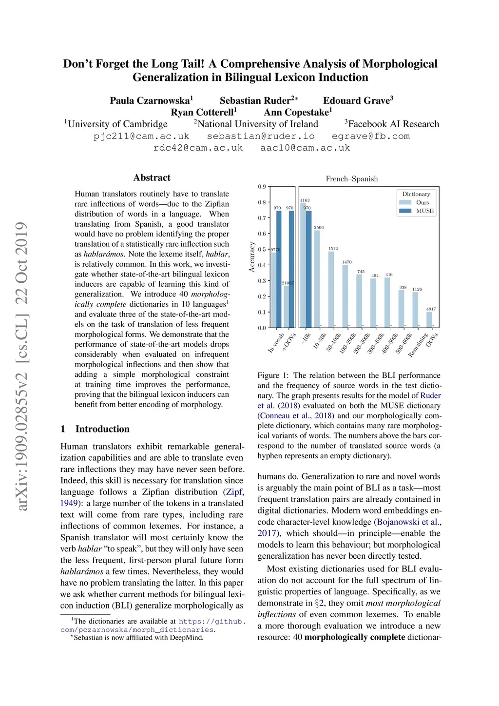 Human translators routinely have to translate rare inflections of words - due to the Zipfian distribution of words in a language. When translating from Spanish, a good translator would have no problem identifying the proper translation of a statistically rare inflection such as habl\áramos. Note the lexeme itself, hablar, is relatively common. In this work, we investigate whether state-of-the-art bilingual lexicon inducers are capable of learning this kind of generalization. We introduce 40 morphologically complete dictionaries in 10 languages and evaluate three of the state-of-the-art models on the task of translation of less frequent morphological forms. We demonstrate that the performance of state-of-the-art models drops considerably when evaluated on infrequent morphological inflections and then show that adding a simple morphological constraint at training time improves the performance, proving that the bilingual lexicon inducers can benefit from better encoding of morphology.