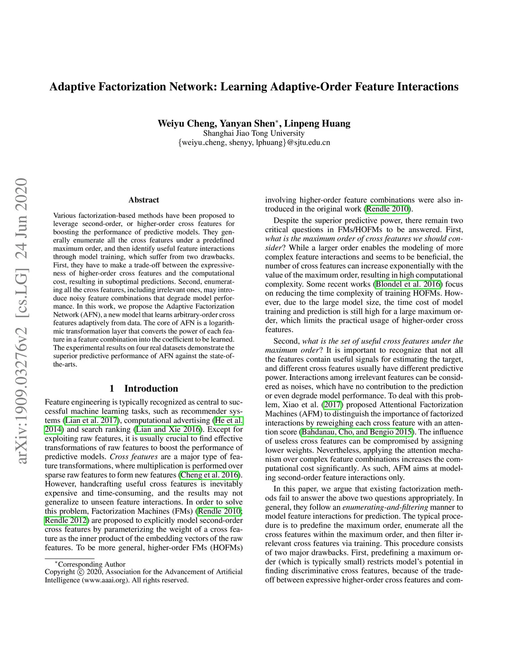 Adaptive Factorization Network: Learning Adaptive-Order Feature