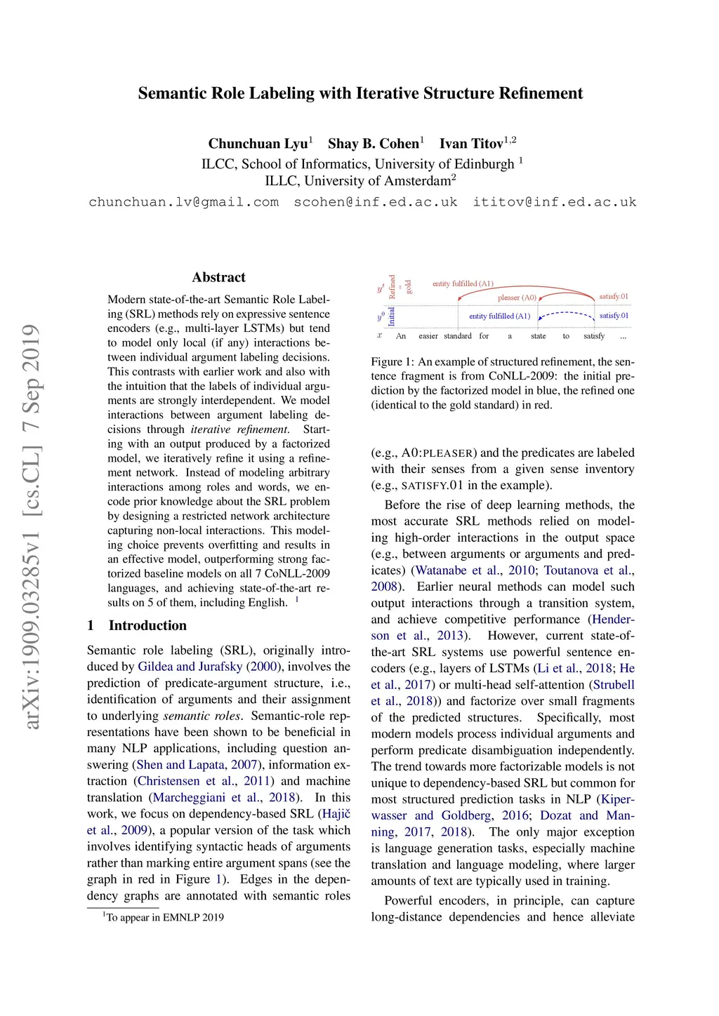 Semantic Role Labeling with Iterative Structure Refinement