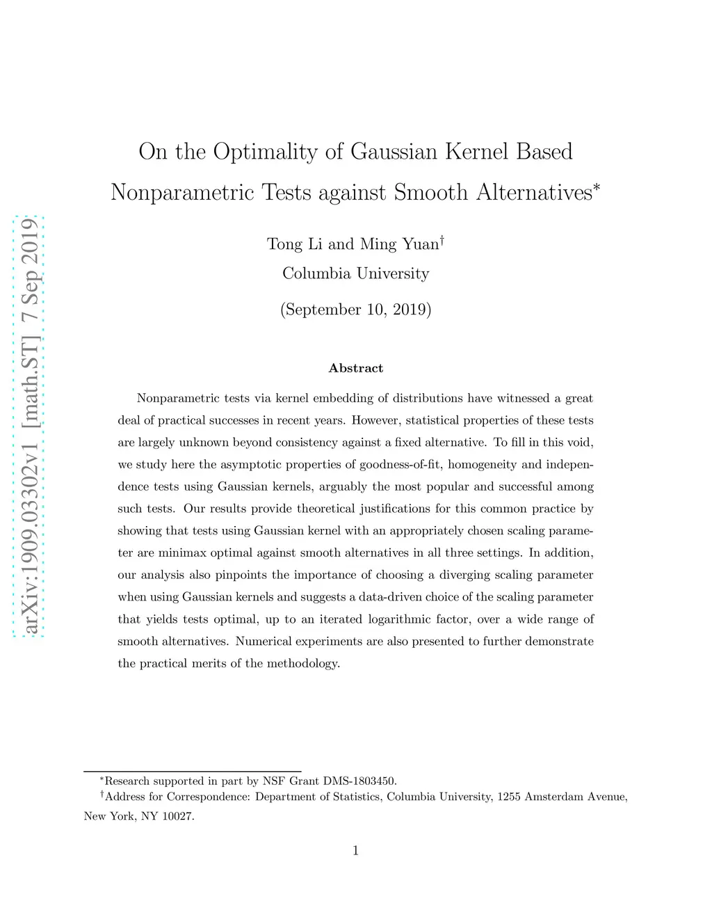 Nonparametric tests via kernel embedding of distributions have witnessed a great deal of practical successes in recent years. However, statistical properties of these tests are largely unknown beyond consistency against a fixed alternative. To fill in this void, we study here the asymptotic properties of goodness-of-fit, homogeneity and independence tests using Gaussian kernels, arguably the most popular and successful among such tests. Our results provide theoretical justifications for this common practice by showing that tests using Gaussian kernel with an appropriately chosen scaling parameter are minimax optimal against smooth alternatives in all three settings. In addition, our analysis also pinpoints the importance of choosing a diverging scaling parameter when using Gaussian kernels and suggests a data-driven choice of the scaling parameter that yields tests optimal, up to an iterated logarithmic factor, over a wide range of smooth alternatives. Numerical experiments are also presented to further demonstrate the practical merits of the methodology.