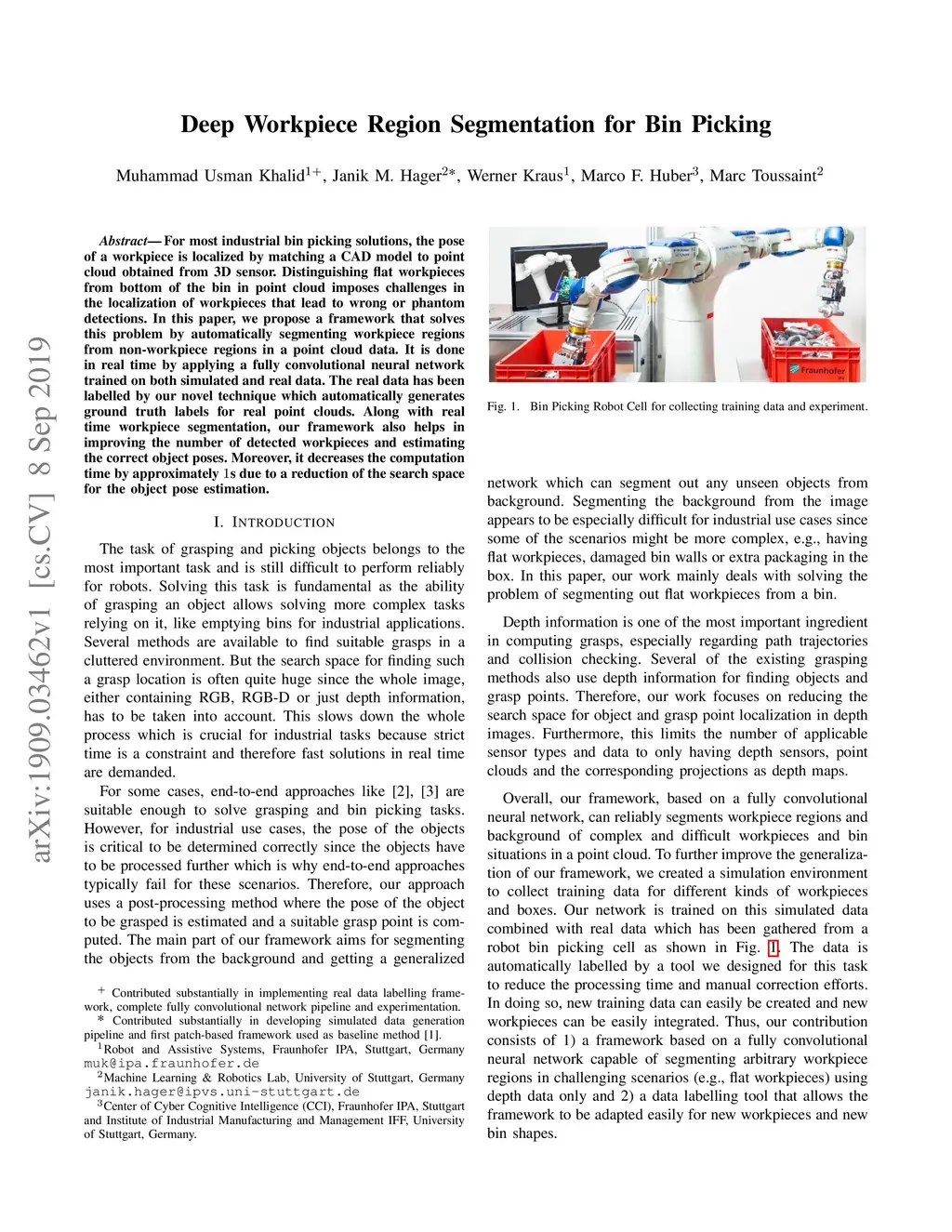 Deep Workpiece Region Segmentation for Bin Picking