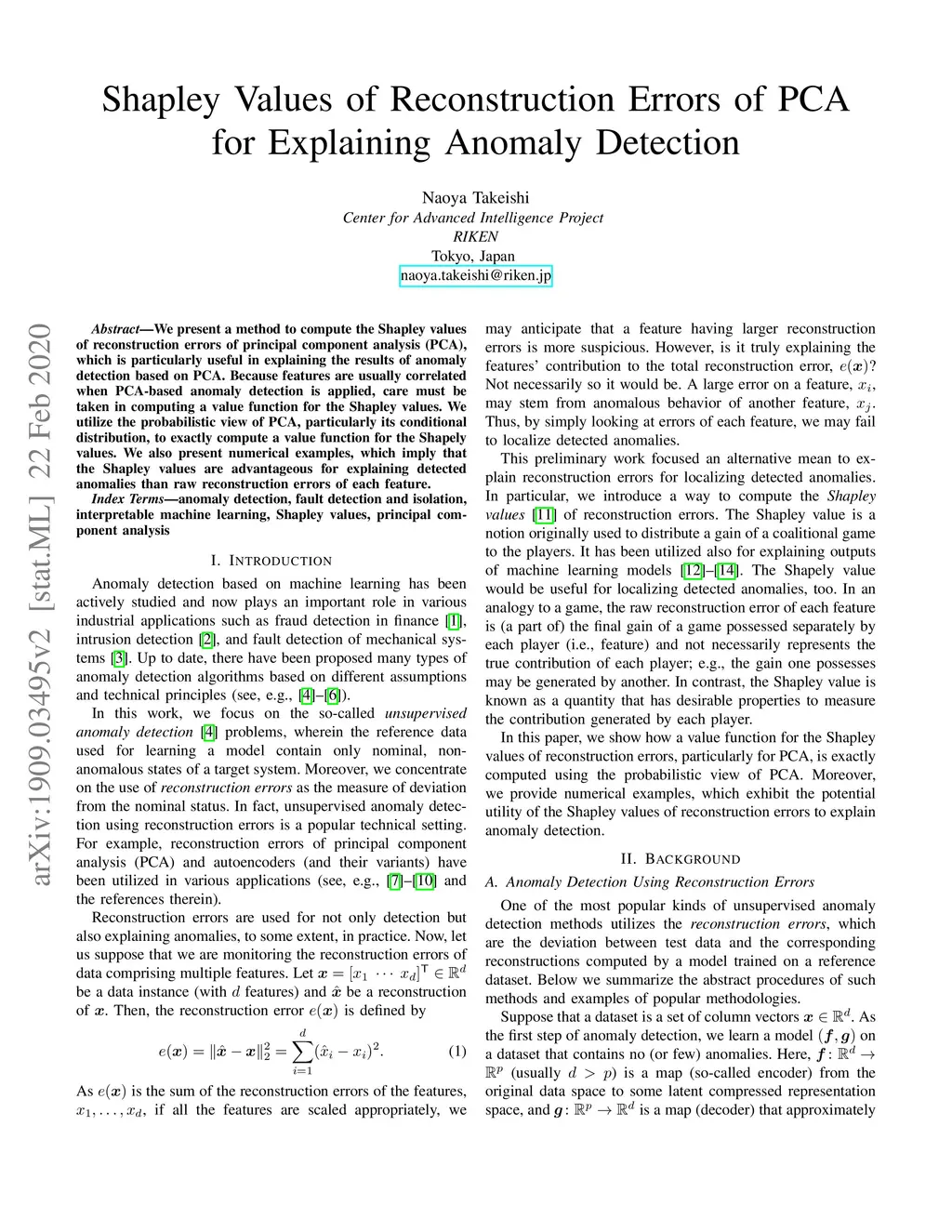 Shapley Values of Reconstruction Errors of PCA for Explaining Anomaly