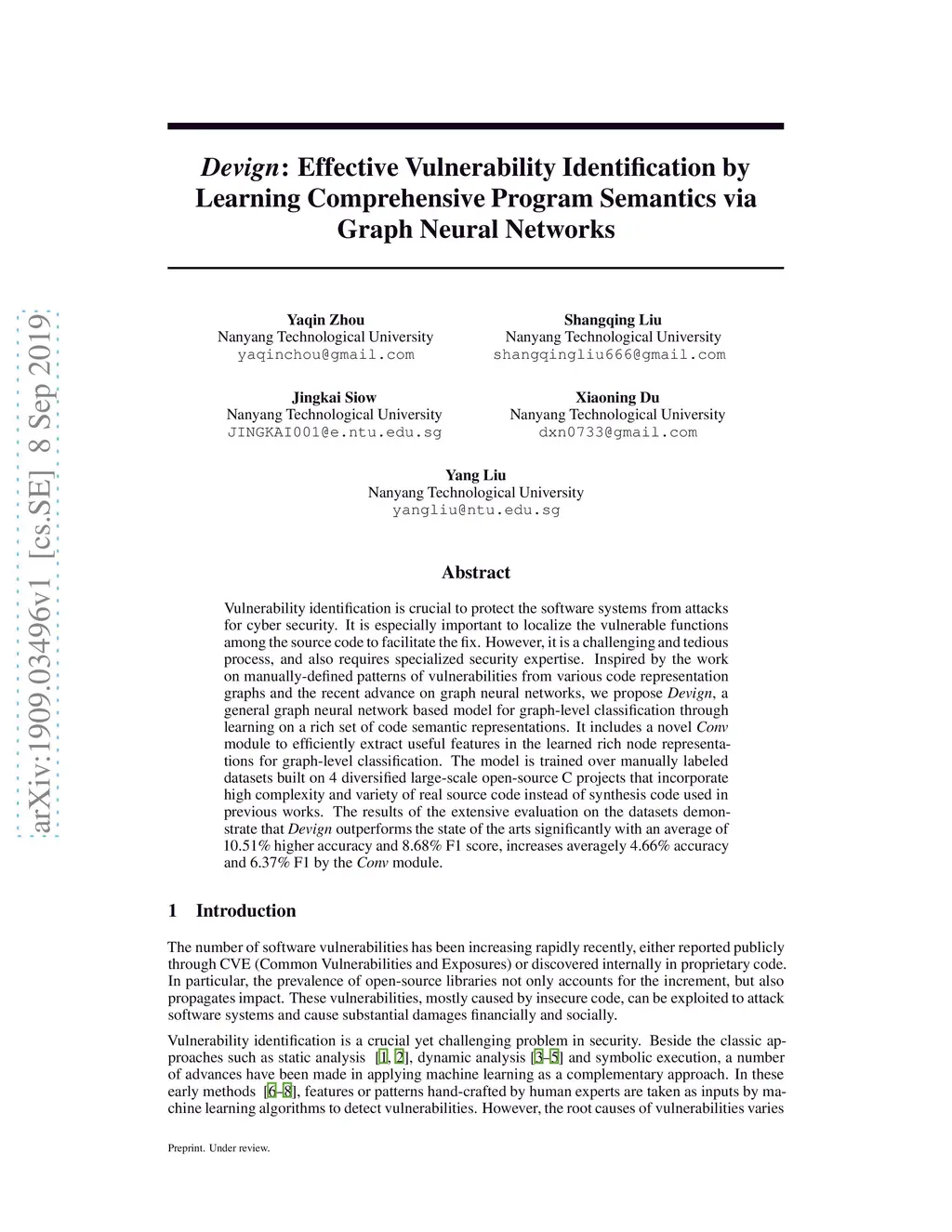 Devign: Effective Vulnerability Identification by Learning Comprehensive