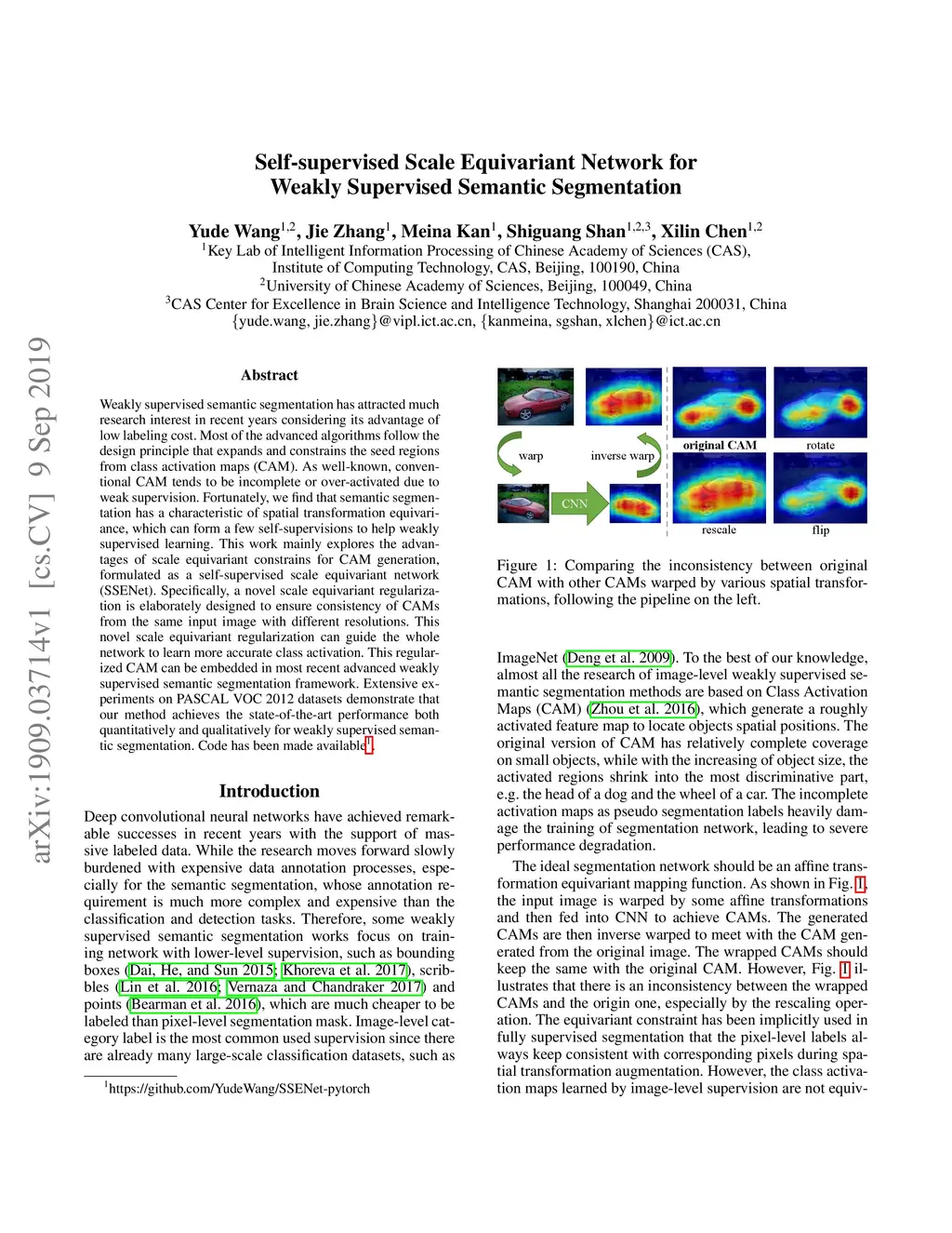Self-supervised Scale Equivariant Network for Weakly Supervised Semantic