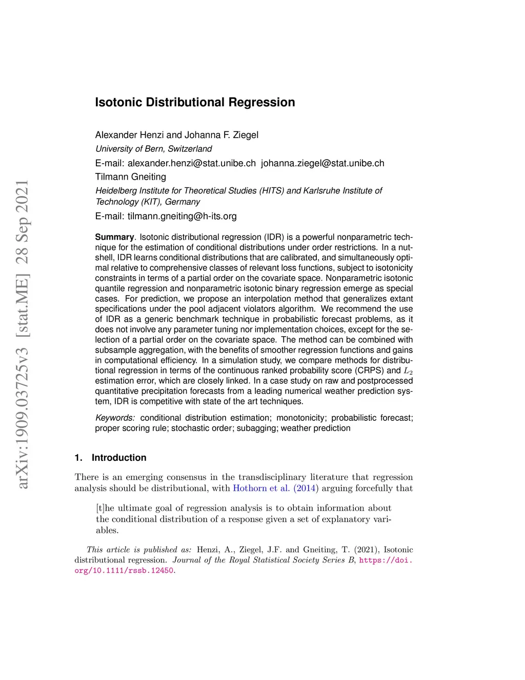 Isotonic Distributional Regression