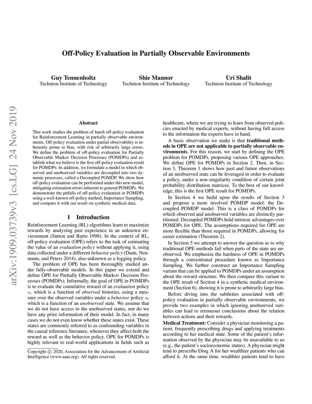 Off-Policy Evaluation in Partially Observable Environments