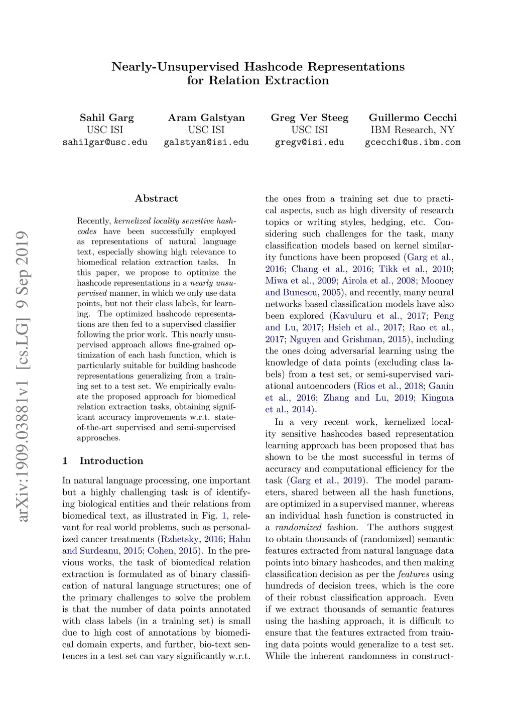 Nearly-Unsupervised Hashcode Representations for Relation Extraction
