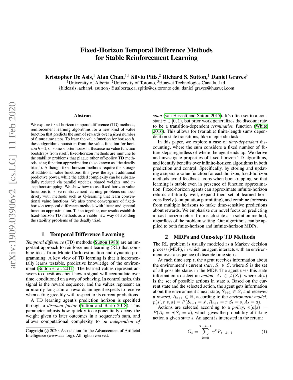 Fixed-Horizon Temporal Difference Methods for Stable Reinforcement