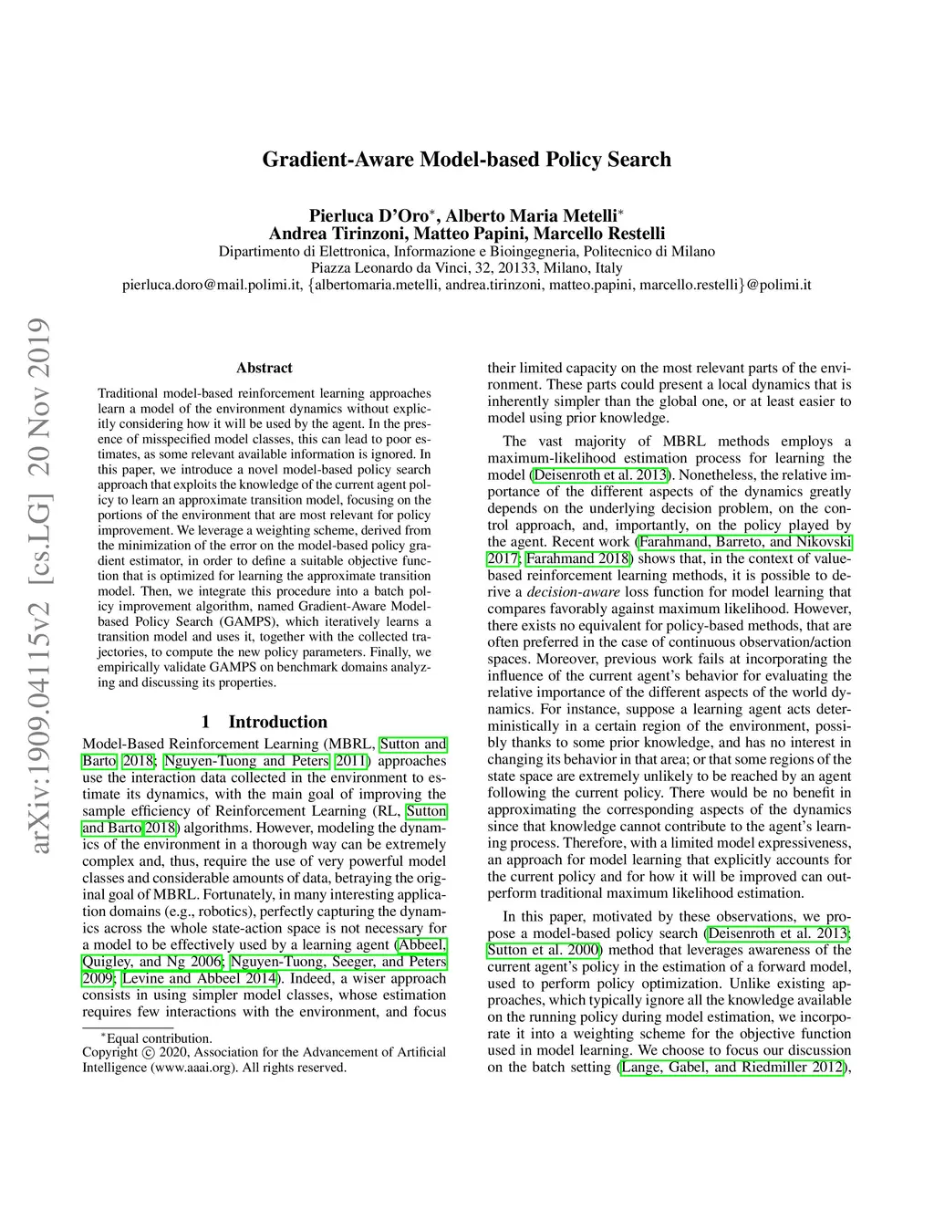 Gradient-Aware Model-based Policy Search