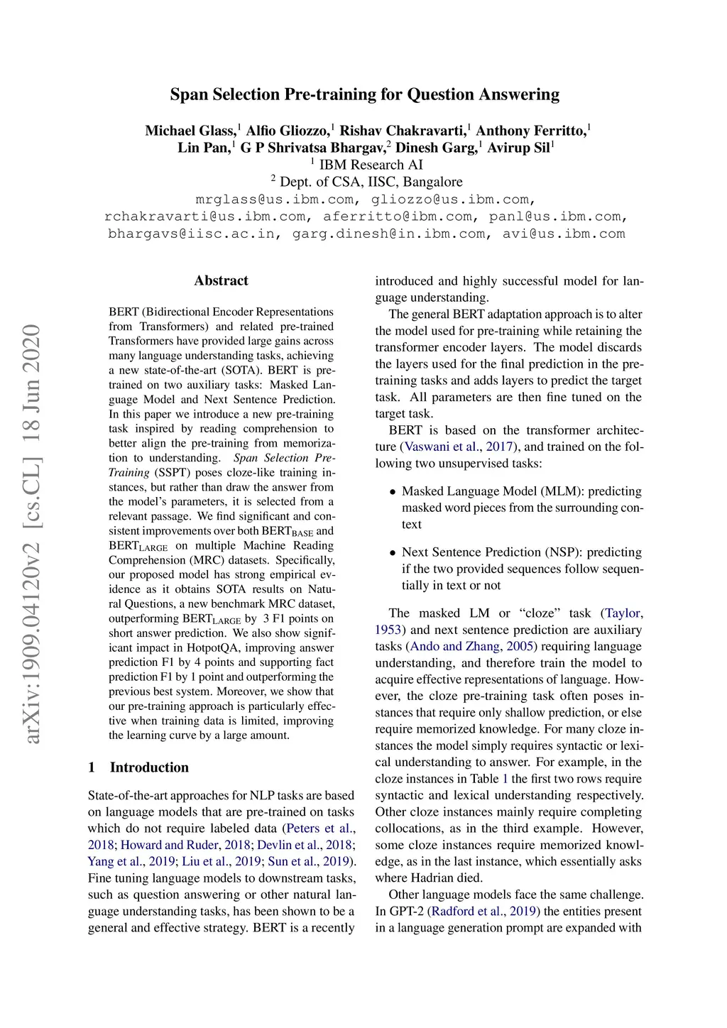 Span Selection Pre-training for Question Answering
