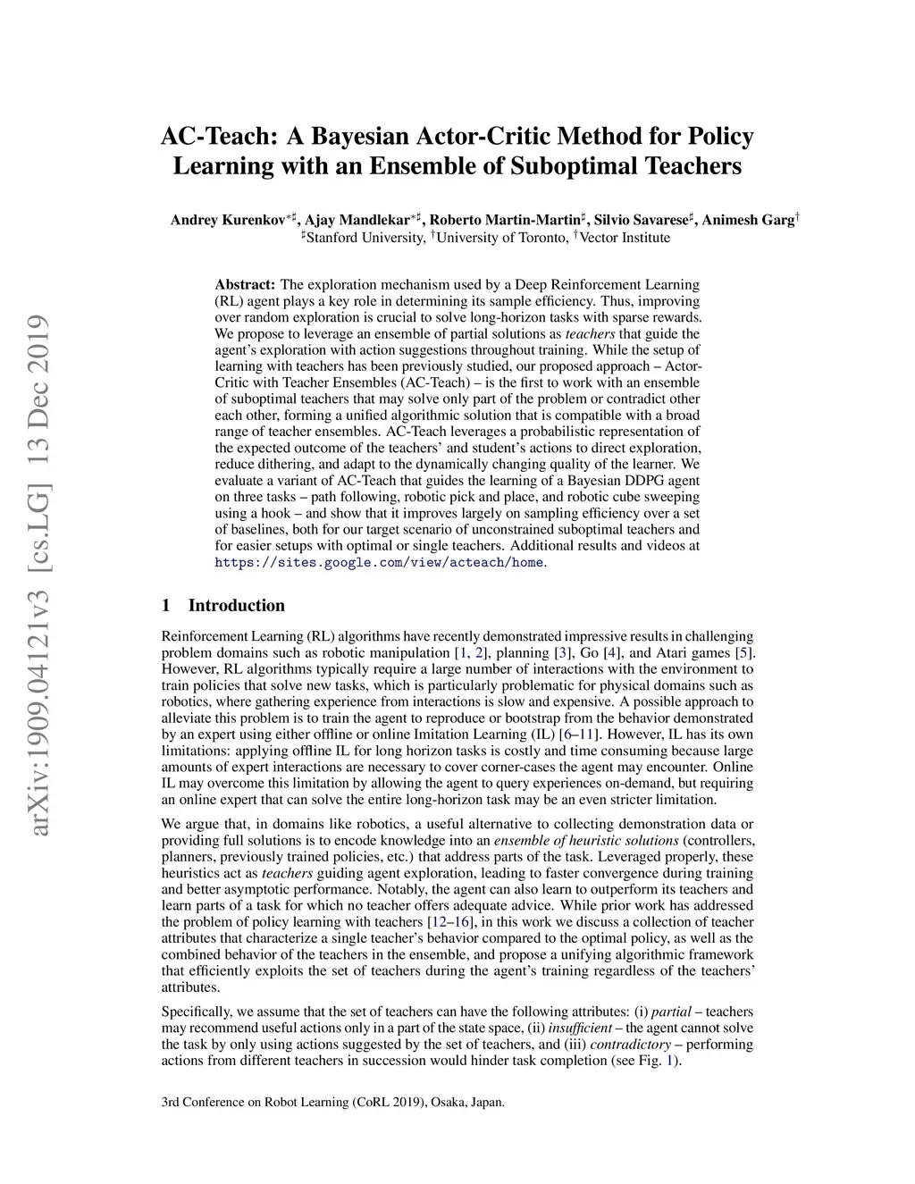 AC-Teach: A Bayesian Actor-Critic Method for Policy Learning with an