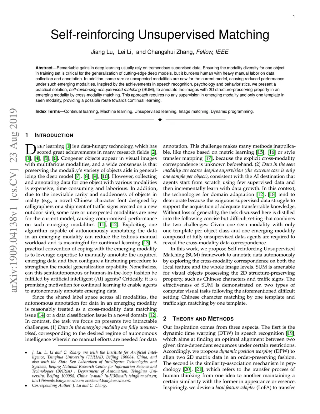 Remarkable gains in deep learning usually rely on tremendous supervised data. Ensuring the modality diversity for one object in training set is critical for the generalization of cutting-edge deep models, but it burdens human with heavy manual labor on data collection and annotation. In addition, some rare or unexpected modalities are new for the current model, causing reduced performance under such emerging modalities. Inspired by the achievements in speech recognition, psychology and behavioristics, we present a practical solution, self-reinforcing unsupervised matching (SUM), to annotate the images with 2D structure-preserving property in an emerging modality by cross-modality matching. This approach requires no any supervision in emerging modality and only one template in seen modality, providing a possible route towards continual learning.