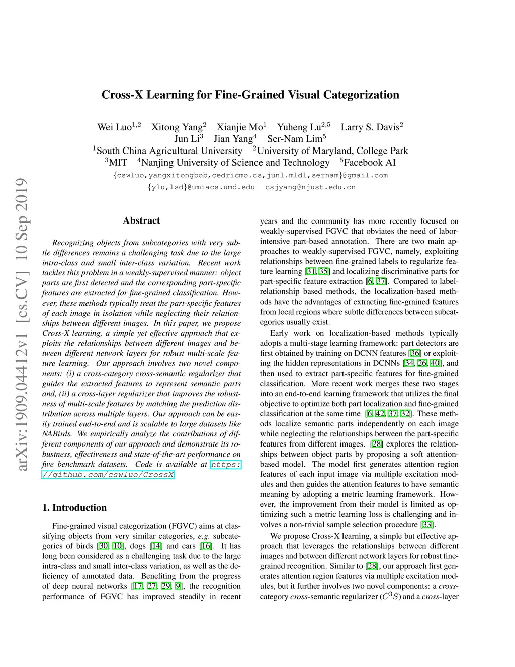 Cross-X Learning for Fine-Grained Visual Categorization