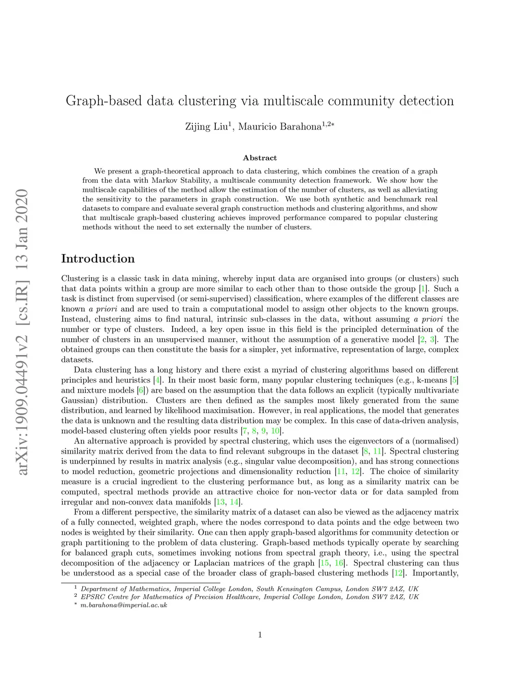 We present a graph-theoretical approach to data clustering, which combines the creation of a graph from the data with Markov Stability, a multiscale community detection framework. We show how the multiscale capabilities of the method allow the estimation of the number of clusters, as well as alleviating the sensitivity to the parameters in graph construction. We use both synthetic and benchmark real datasets to compare and evaluate several graph construction methods and clustering algorithms, and show that multiscale graph-based clustering achieves improved performance compared to popular clustering methods without the need to set externally the number of clusters.