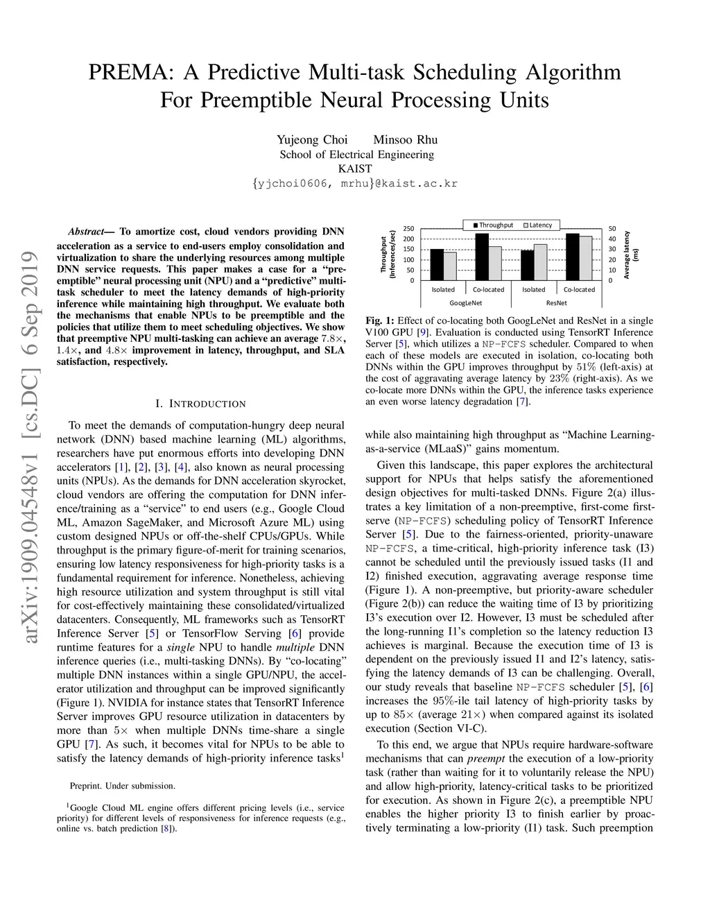 PREMA: A Predictive Multi-task Scheduling Algorithm For Preemptible