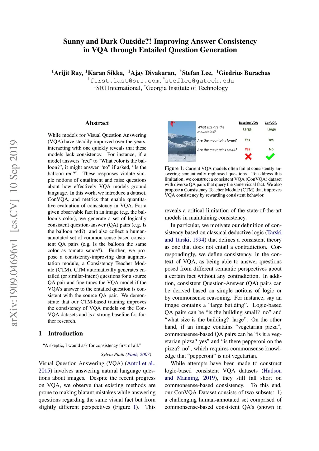 Sunny and Dark Outside?! Improving Answer Consistency in VQA through