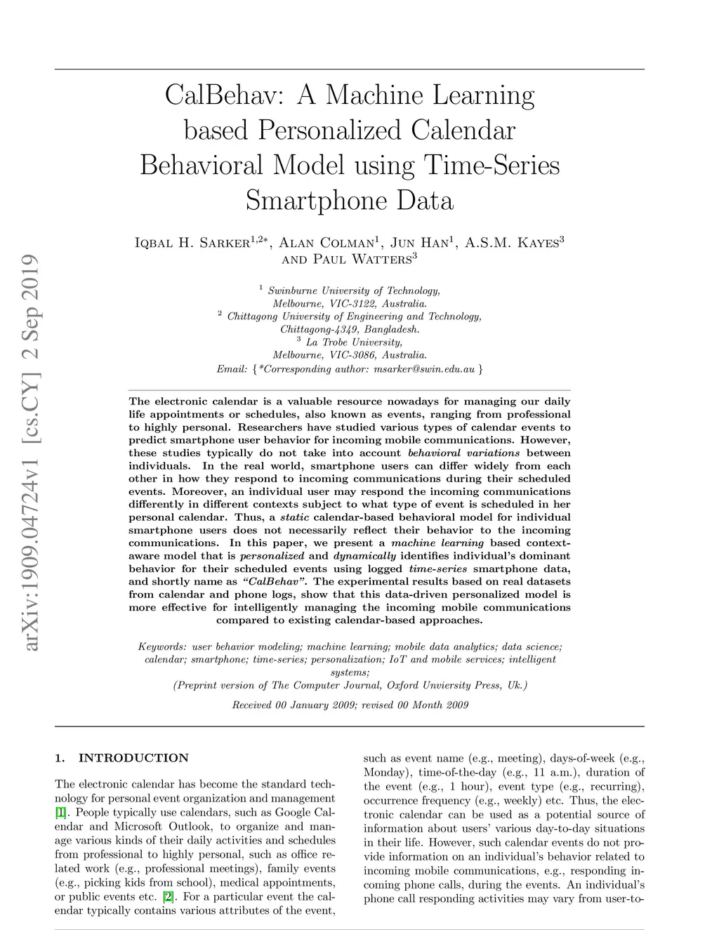 CalBehav: A Machine Learning based Personalized Calendar Behavioral