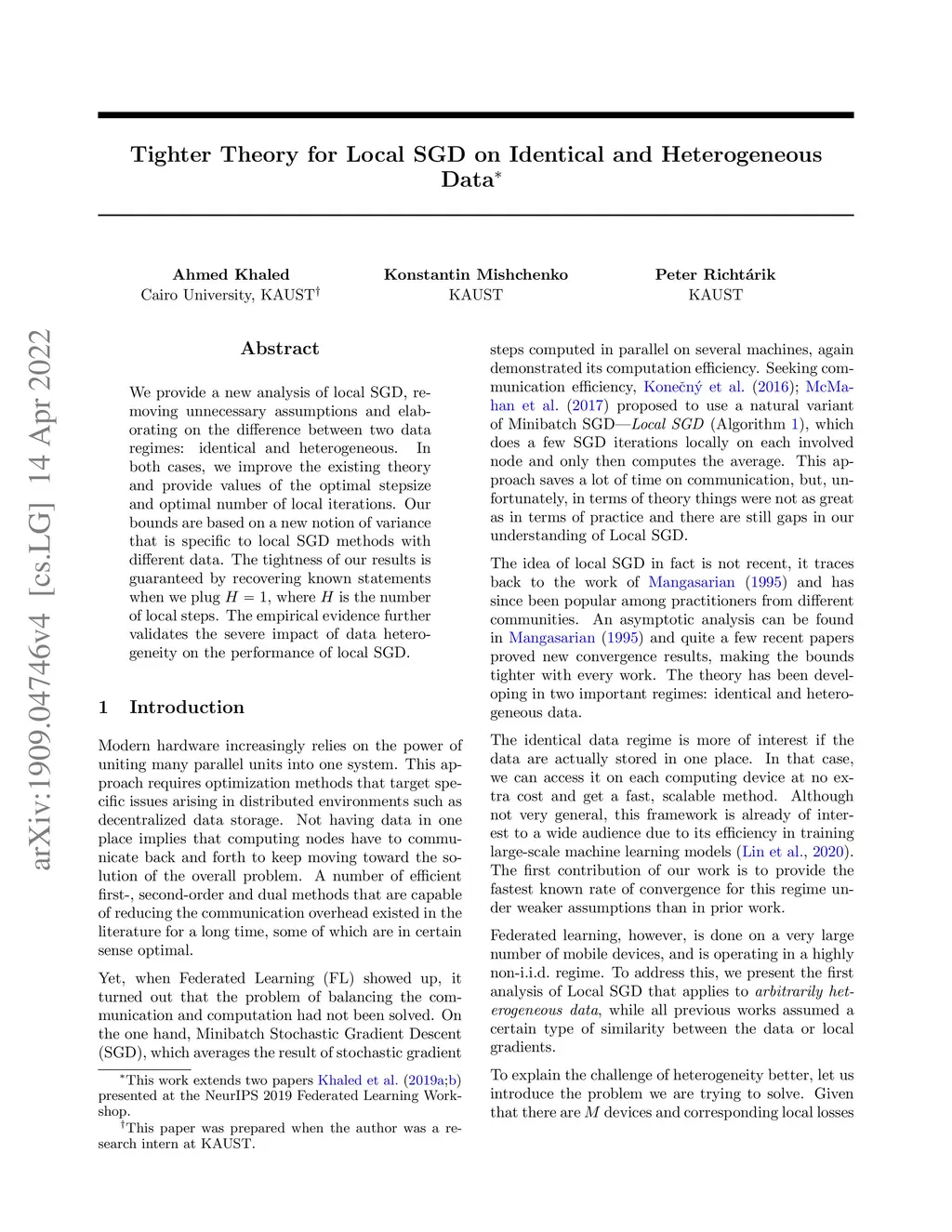 We provide a new analysis of local SGD, removing unnecessary assumptions and elaborating on the difference between two data regimes: identical and heterogeneous. In both cases, we improve the existing theory and provide values of the optimal stepsize and optimal number of local iterations. Our bounds are based on a new notion of variance that is specific to local SGD methods with different data. The tightness of our results is guaranteed by recovering known statements when we plug , where is the number of local steps. The empirical evidence further validates the severe impact of data heterogeneity on the performance of local SGD.