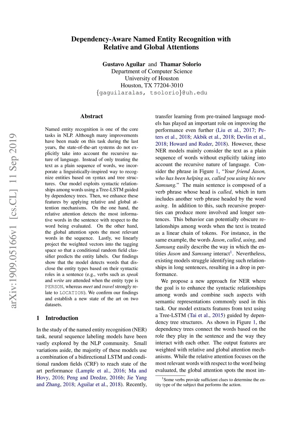 Dependency-Aware Named Entity Recognition with Relative and Global