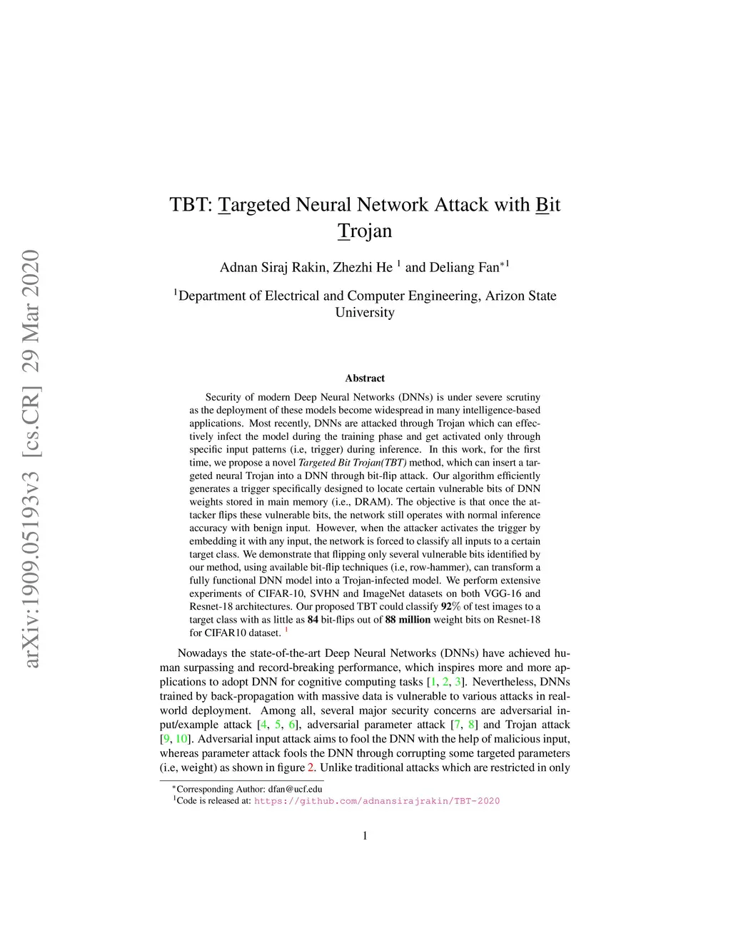 TBT: Targeted Neural Network Attack with Bit Trojan