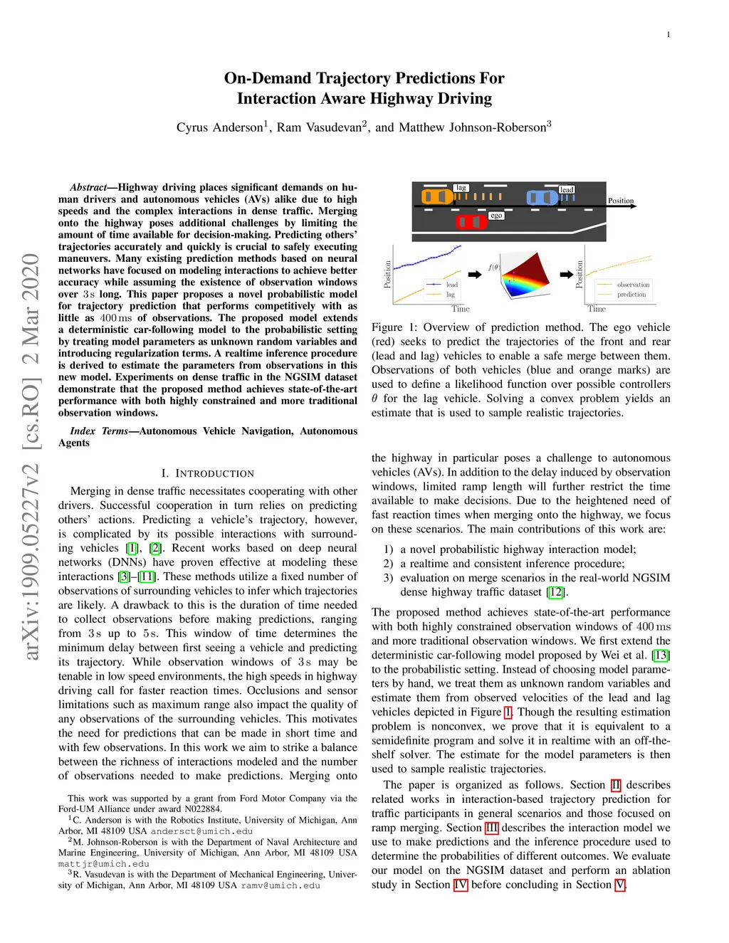 On-Demand Trajectory Predictions for Interaction Aware Highway Driving