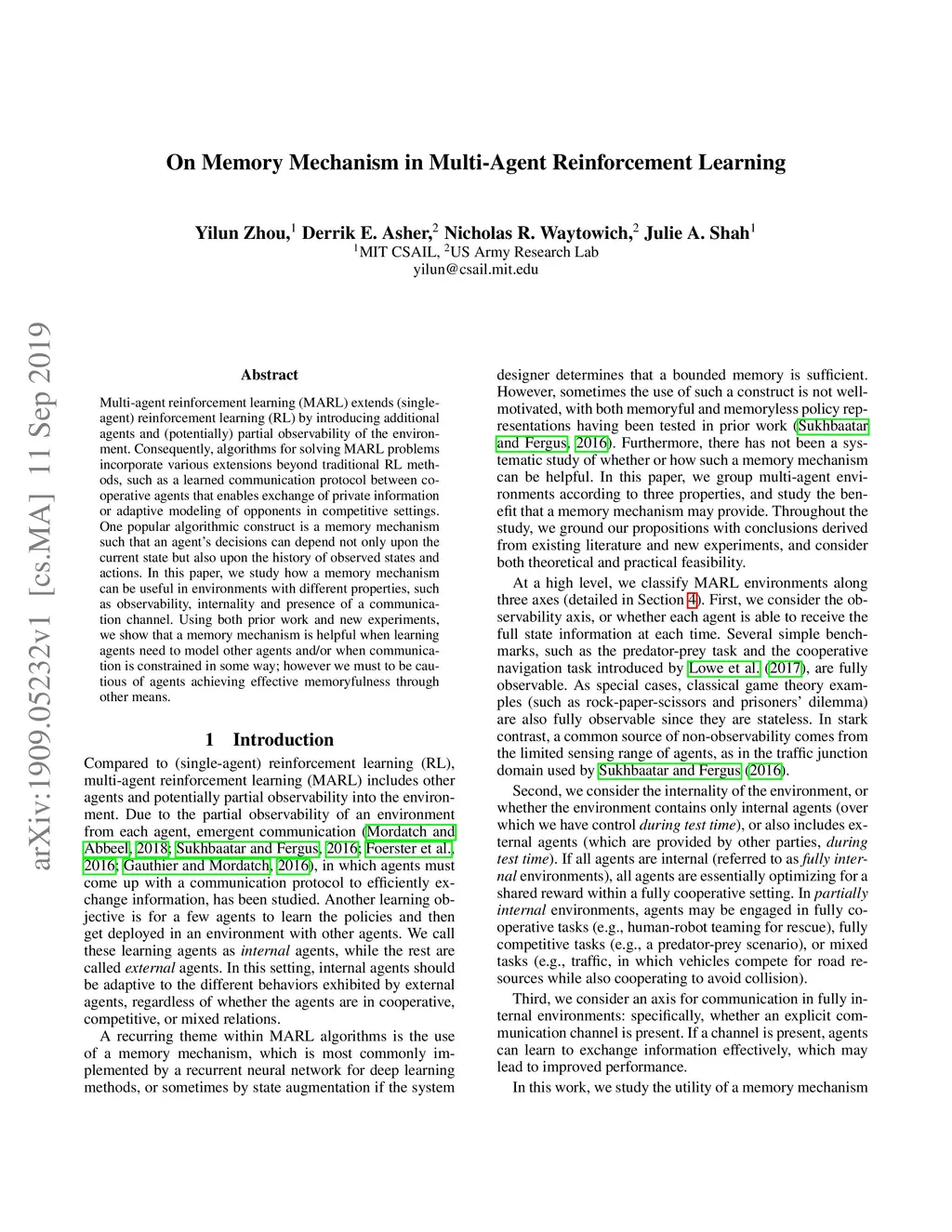 On Memory Mechanism in Multi-Agent Reinforcement Learning
